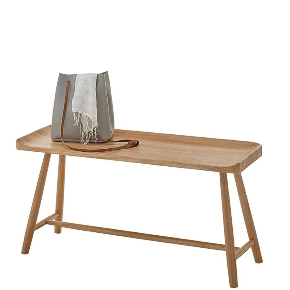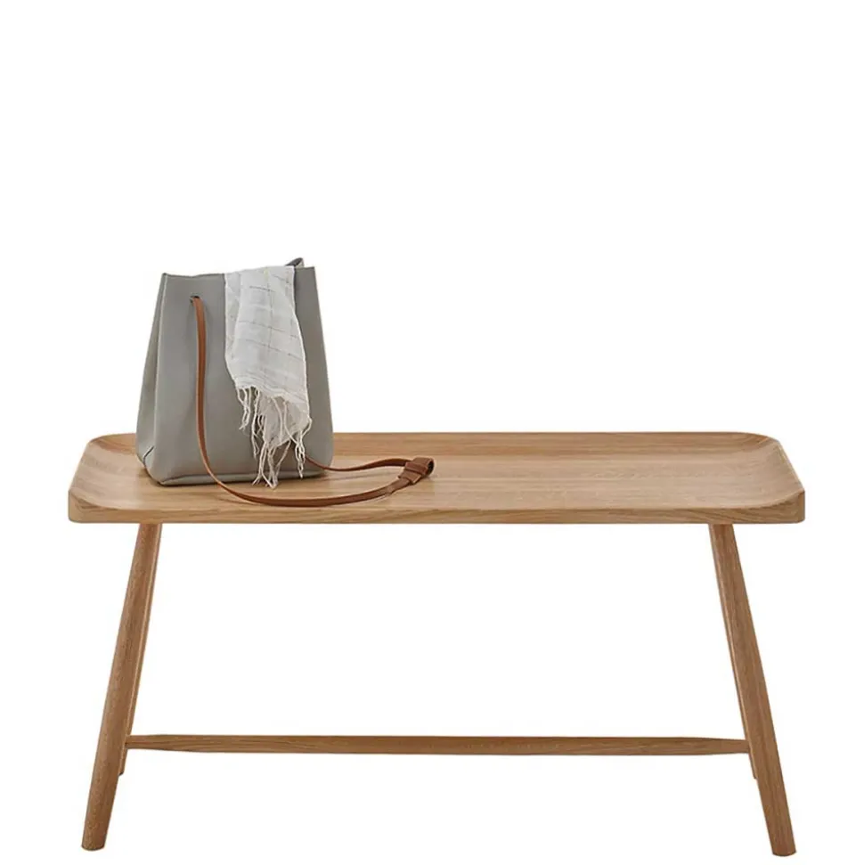 Gefertigt aus hochwertigem, massivem Eichenholz, verspricht die Garderobenbank „Gangizo“ nicht nur optische, sondern auch haptische Qualität. Die Holzoberflächen sind sorgfältig geölt, wodurch die charakteristische Färbung des Eichenholzes optimal zur Geltung kommt und gleichzeitig vor äußeren Einflüssen geschützt wird. Die klassische rechteckige Sitzfläche überzeugt mit hochgezogenen Seitenabschlüssen, die dem Design eine besondere Note verleihen.