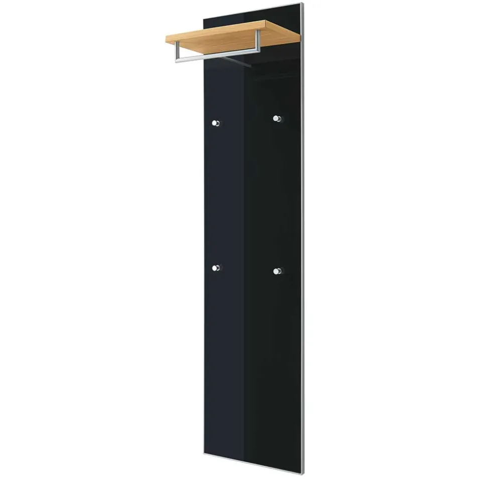 - Leicht zu reinigende Oberfläche mit Glas beschichtet, von hinten lackiert, Hutablage mit Eiche Echtholz furniert und lackiert