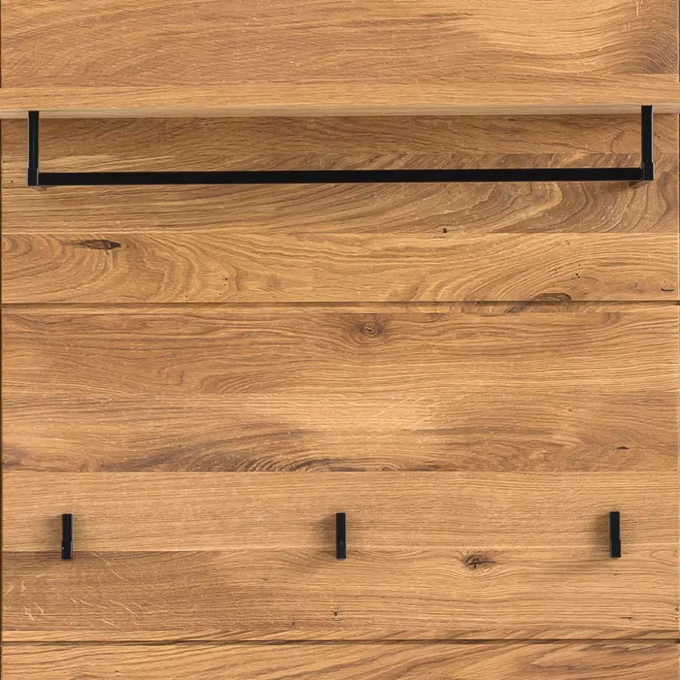 Eleganz trifft auf Funktionalität: Das Garderobenpaneel „Sennya“ überzeugt durch sein modernes Design, das jedem Eingangsbereich eine besondere Note verleiht. Mit einer Kombination aus massivem Eichenholz und Holzwerkstoff ist dieses Paneel nicht nur ein echter Hingucker, sondern auch besonders robust und langlebig. Die geölte Oberfläche sowie das Eiche-Echtholzfurnier betonen die Natürlichkeit des Holzes und verleihen dem Paneel eine warme und wohnliche Ausstrahlung.