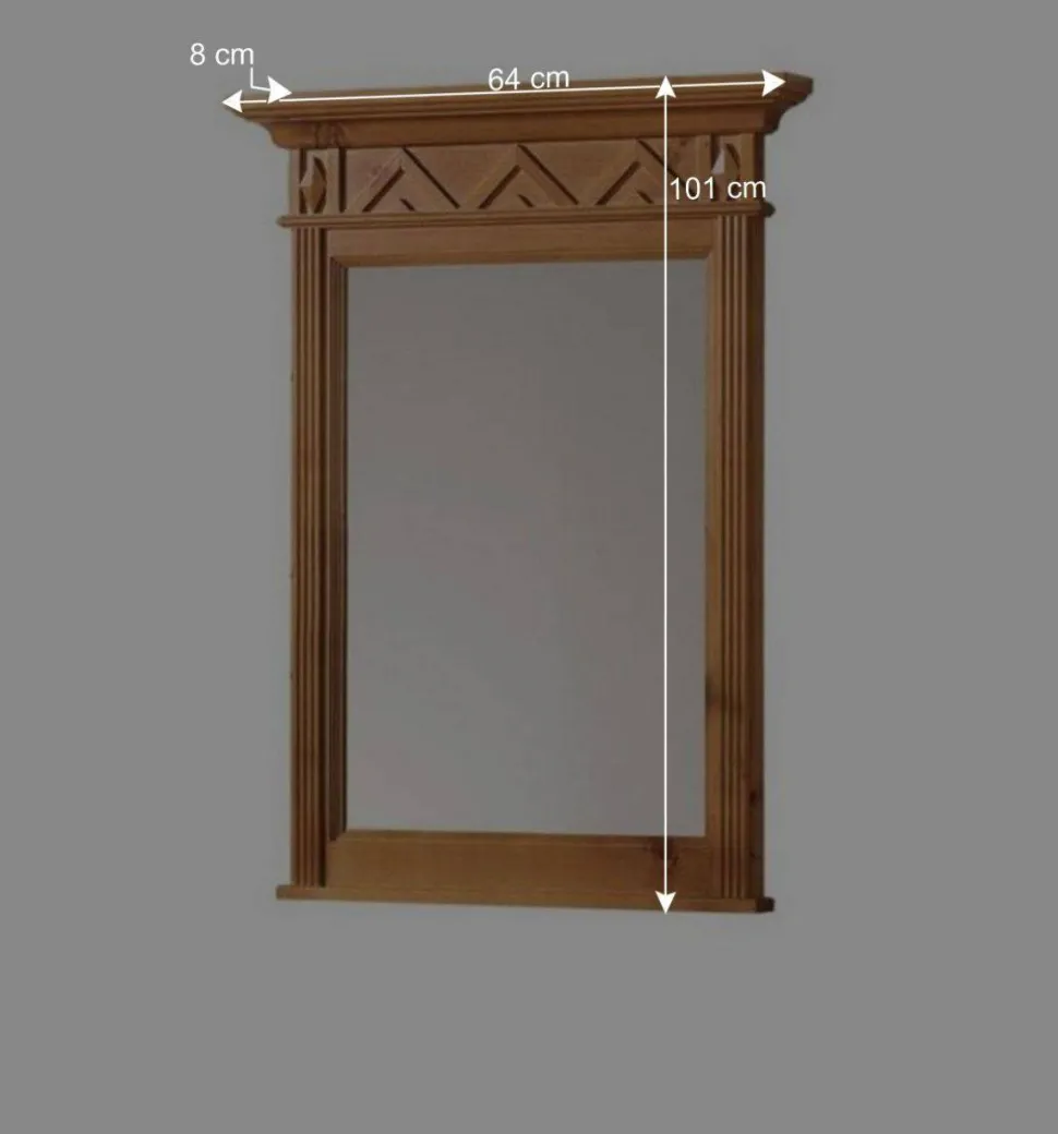 Die Holzoberfläche wurde mit einem speziellen Antiklack behandelt. Dieser Lack betont die natürliche Maserung des Fichtenholzes und verleiht dem Spiegel einen antiken, leicht verwitterten Look. Es gibt Ihrem Interieur somit einen Touch von Vintage und Geschichten aus vergangenen Zeiten. Dank traditioneller Schreinerqualität können Sie sich auf eine hohe Qualität von Material und Verarbeitung verlassen.
