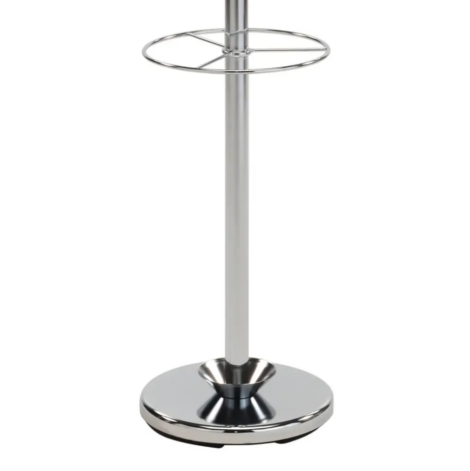 Gefertigt aus Metall und mit einer pflegeleicht verchromten Oberfläche versehen, bietet „Linz“ eine robuste Konstruktion, die gegen Abnutzung und Korrosion schützt. Die stabil freistehende Bodenplatte mit einem Durchmesser von 30 cm sorgt für festen Halt und verhindert ein Kippen – selbst bei voller Beladung.