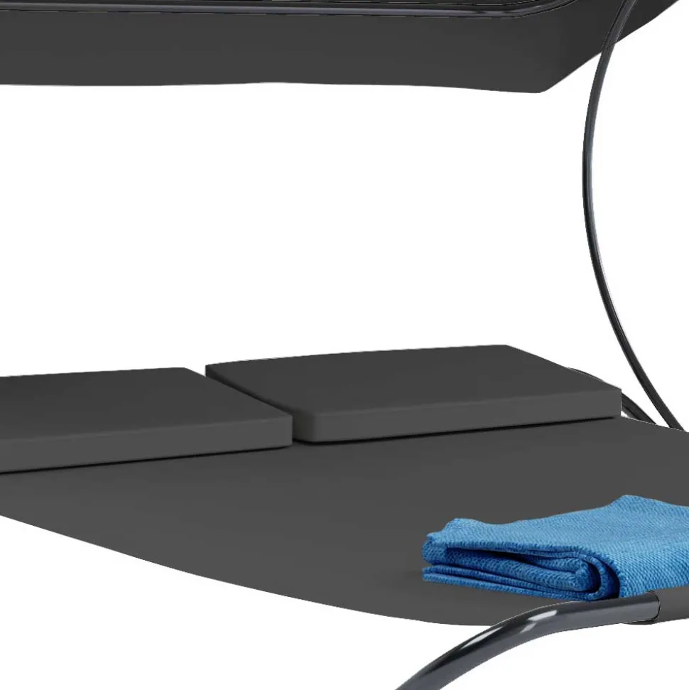 Der Bezug der Sonnenliege aus Dunkelgrauem Webstoff (70 % Polychlorid, 30 % Polyester) bringt gleich mehrere Vorteile mit sich. Zum einen ist er besonders pflegeleicht: Flecken lassen sich schnell abwischen, sodass die Liege immer frisch aussieht. Darüber hinaus ist der Stoff widerstandsfähig gegenüber Witterungseinflüssen und UV-Strahlung. Das bedeutet für Sie: Die Liege bleibt auch nach vielen Sonnentagen und Regenfällen in einwandfreiem Zustand. Kein ständiges Nachbehandeln oder Sorgen um das Material!