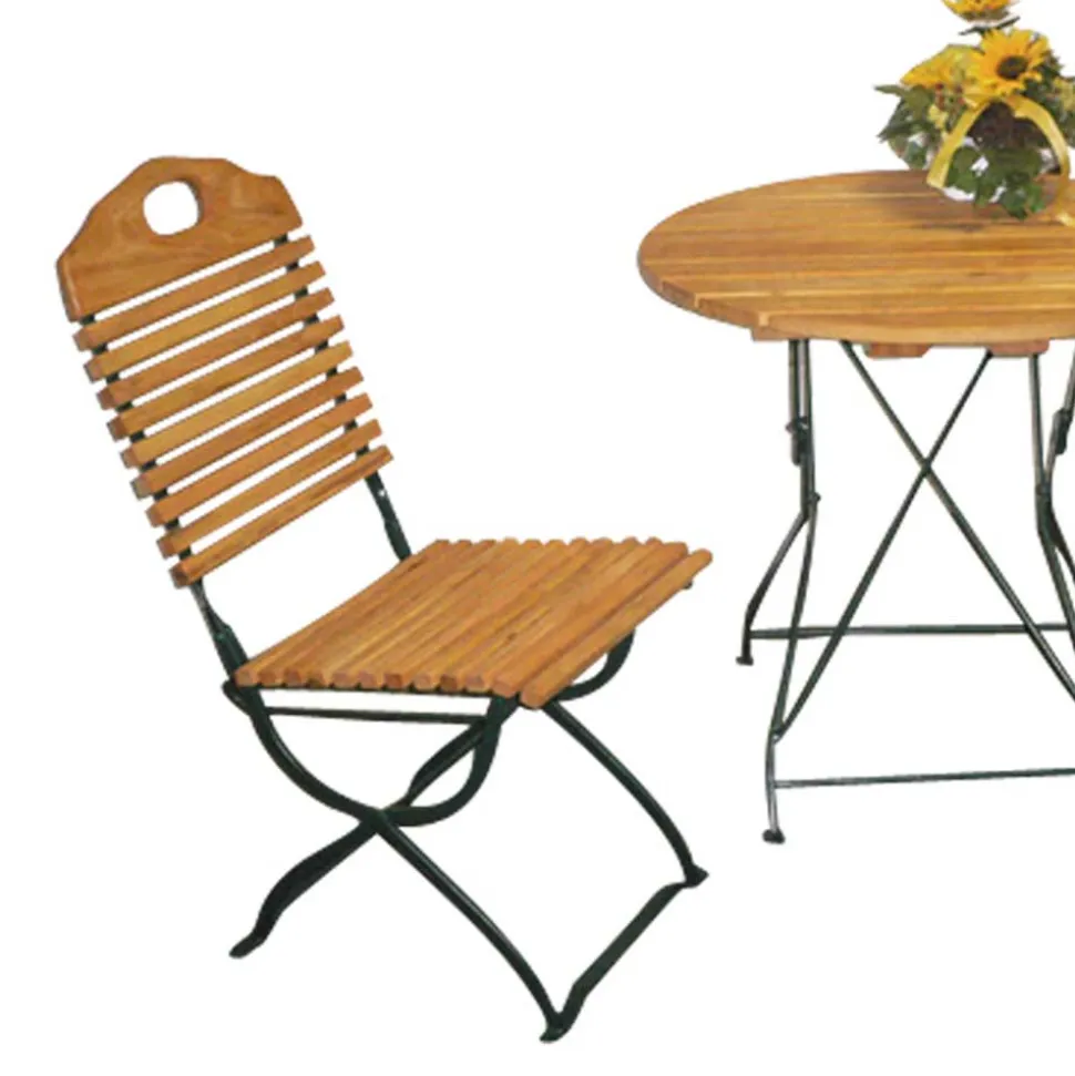 Investition in dieses dreiteilige Set bedeutet, sich für ein Ensemble zu entscheiden, das in jeder Hinsicht überzeugt – sowohl optisch als auch praktisch. Stilvoll gestalteter Tisch beeindruckt mit den Maßen 77 cm in der Breite, 72 cm in der Höhe und 77 cm in der Tiefe. Die Tischplatte in ansprechender Lattenoptik lädt zu geselligen Runden und genussvollen Momenten im Freien ein. Harmonie findet sich auch in den beiden Stühlen, die jeweils 40 cm breit, 95 cm hoch und 60 cm tief ausfallen. Mit einer Sitzhöhe von ca. 46 cm und einer großzügigen Sitzbreite von ca. 40 cm garantiert jedes Sitzmöbel außergewöhnlichen Komfort. Praktisches Griffloch in der Rückenlehne ermöglicht ein individuelles Verstellen, während gekreuzte Fußgestelle aus pulverbeschichtetem Flachstahl, ergänzt durch stabilisierende Verstrebungen, für höchste Stabilität sorgen. Clever konzipiert und klappbar gestaltet, lässt sich dieses Ensemble mühelos verstauen, wenn es einmal nicht in Gebrauch ist – ideal für wechselnde Bedürfnisse und saisonale Gestaltung.