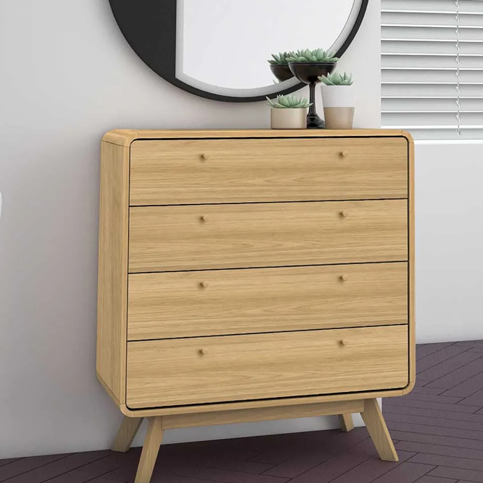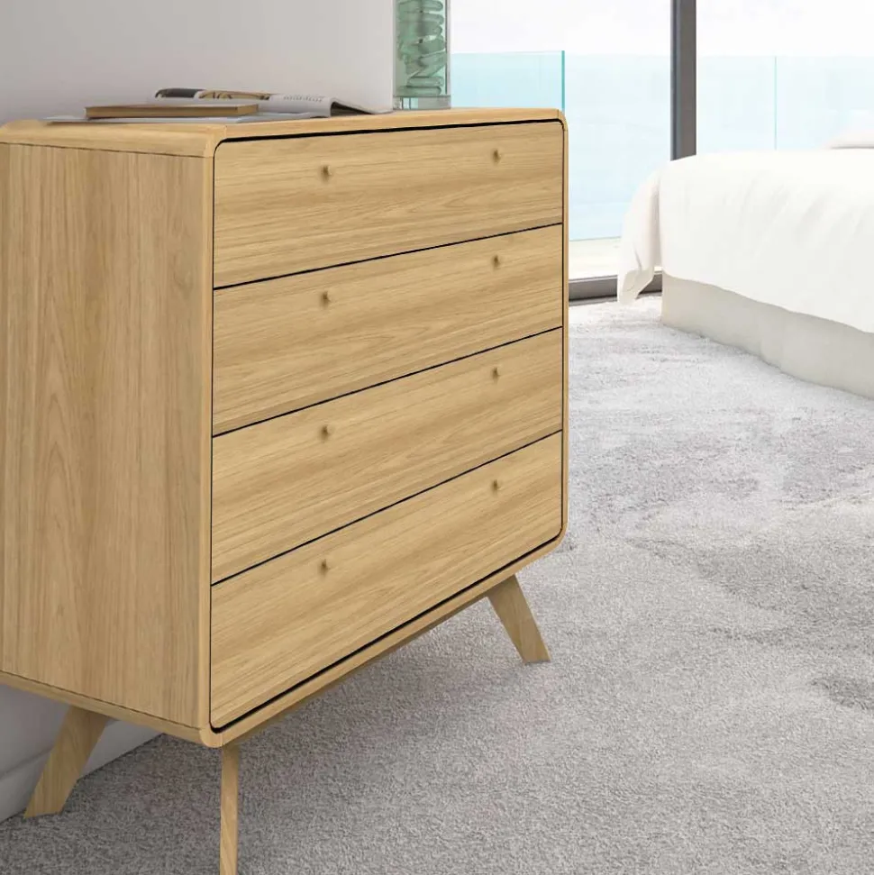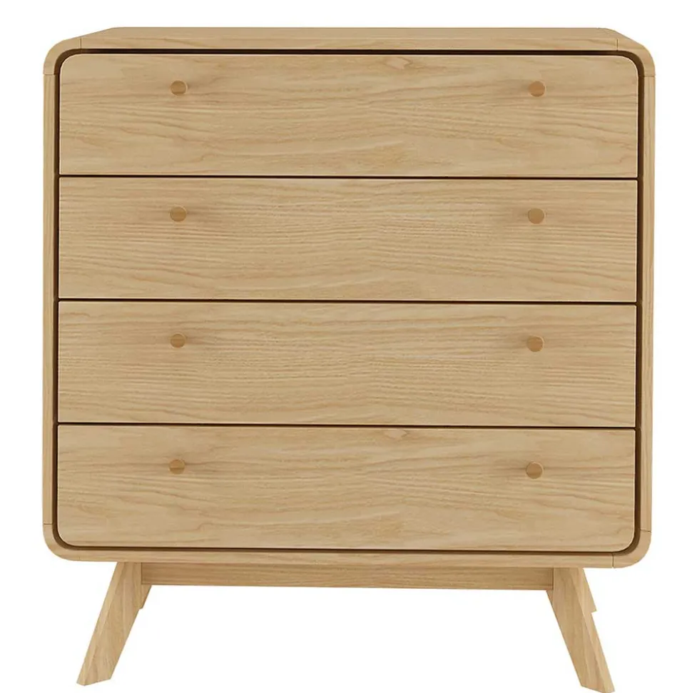 Das standfeste Untergestell aus MDF mit leicht nach außen geneigten Füßen sorgt nicht nur für einen sicheren Stand, sondern auch für eine ansprechende Optik. Dank der detaillierten Montageanleitung ist die Kommode leicht zu montieren, sodass Sie ohne großen Aufwand einen Hauch von Skandinavien in Ihr Zuhause bringen können.