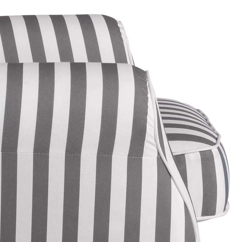 Der strapazierfähige Flachgewebe-Bezug mit seinem frischen Streifenmuster in Weiß und Hellgrau vereint optische Leichtigkeit mit einer angenehm weichen, textilen Oberfläche. Dank einer Martindale-Zahl von 24.000 Scheuertouren ist dieser Stoff nicht nur optisch ein Highlight, sondern auch für den Alltag bestens gewappnet – ideal für Familien, Gäste und alle, die viel und gerne leben. Die Mischung aus Baumwolle und Polyester sorgt dabei für ein angenehmes Hautgefühl und pflegeleichte Eigenschaften.