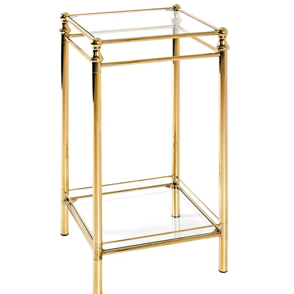 - In Bodennähe eine zusätzliche Glasablage mit zierlicher Reling