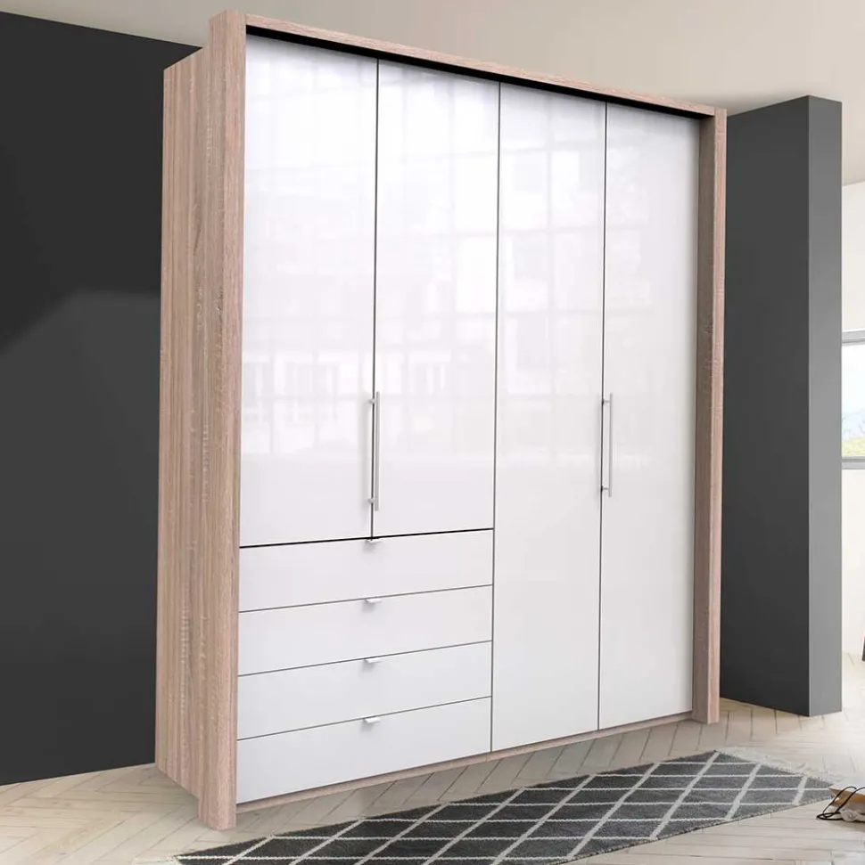 - Wirkungsvoller Kleiderschrank in Weiß und Eiche Sägerau