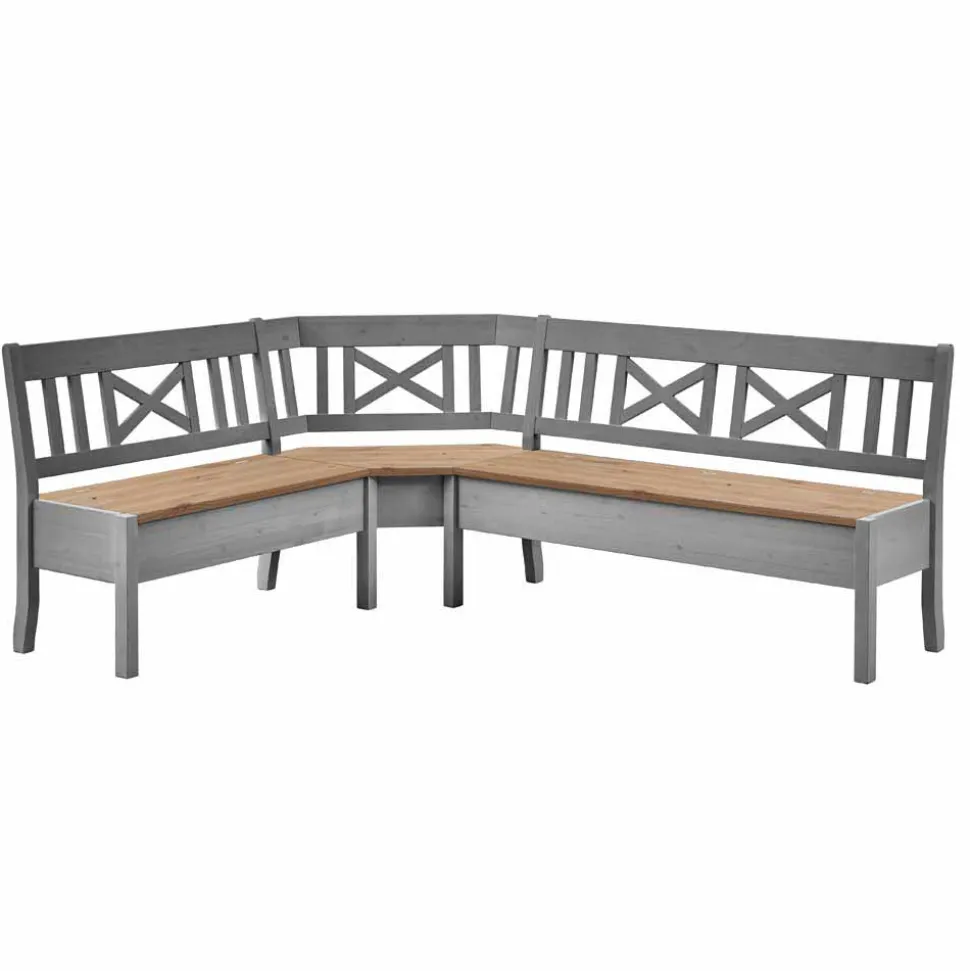 - Ansprechende Eckbank in Grau und Kiefer laugenfarbig