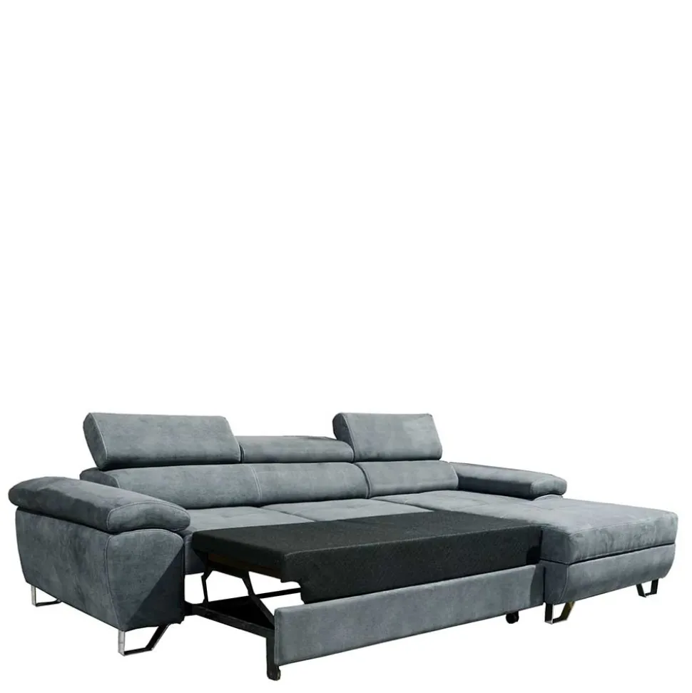 Für Übernachtungsgäste oder ein spontanes Nickerchen lässt sich die Sofaecke „Quartia“ mühelos in ein Bett verwandeln. Der Auszug wird einfach nach vorne geschoben und schon entsteht eine großzügige Liegefläche von 215×120 cm. Der lange Schenkel der Sofaecke ist mit einem Bettkasten ausgestattet, der über eine praktische Lift-Öffnung verfügt. Diese erleichtert das Öffnen und Schließen und bietet zusätzlichen Stauraum für Bettwäsche oder Kissen. Je nach Raumaufteilung können Sie den langen Schenkel wahlweise rechts oder links platzieren.