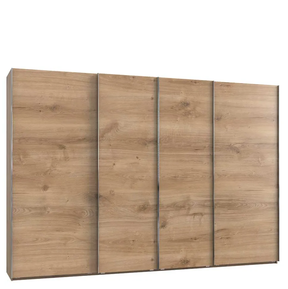 Die vier Schwebetüren des Schrankes überzeugen nicht nur durch ihr elegantes Erscheinungsbild, sondern auch durch ihre praktische Funktionalität. Dank der Synchron-Funktion können Sie die Türen mühelos und sanft öffnen und schließen. Die hochwertigen Selbsteinzüge sorgen dafür, dass die Türen leise und sanft gleiten, ohne unangenehmes Quietschen.