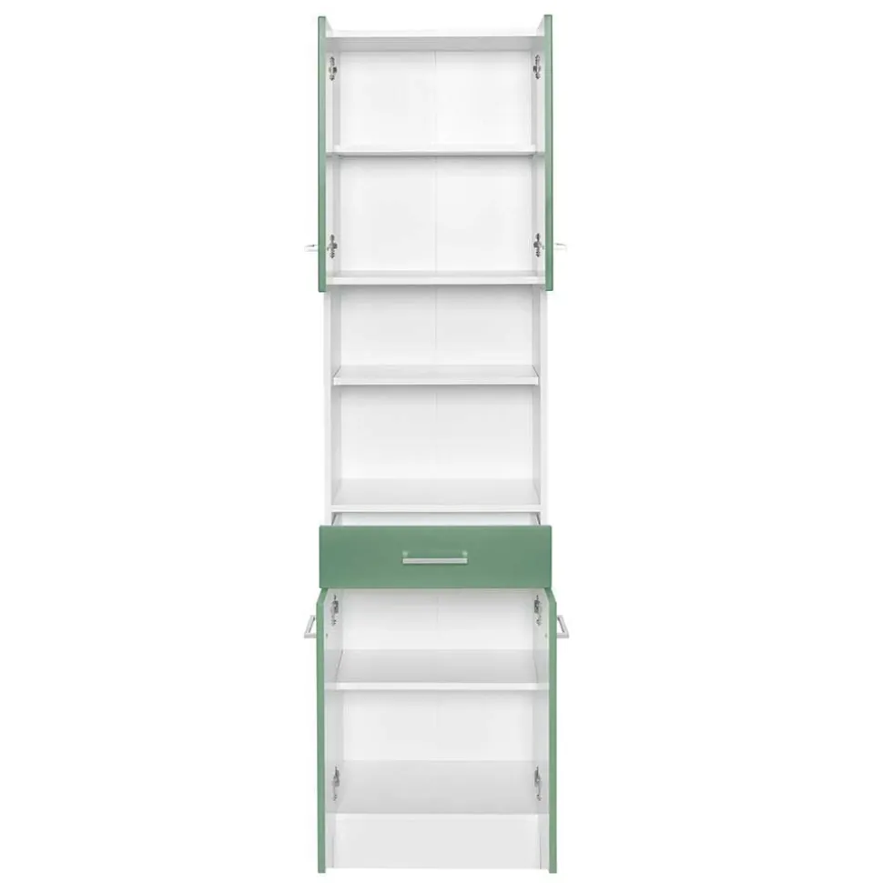 Frisches Grün trifft auf strahlendes Weiß – diese Farbkombination verleiht dem Badezimmer-Set einen modernen, lebendigen Charakter. Klare Linien und großzügige Bügelgriffe aus hochwertigem Material unterstreichen das zeitgemäße Design. Jedes Detail ist darauf ausgelegt, nicht nur funktional zu sein, sondern auch Ihrem Bad eine wohnliche, einladende Note zu geben. Metallbeschläge und präzise verarbeitete Materialien garantieren Langlebigkeit und eine hochwertige Anmutung, sodass Sie viele Jahre Freude an Ihrem Badezimmer-Set haben werden.