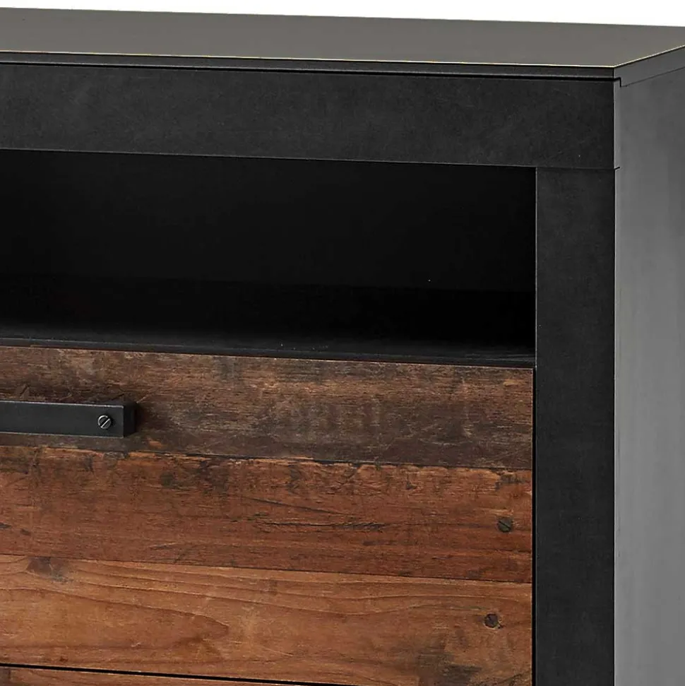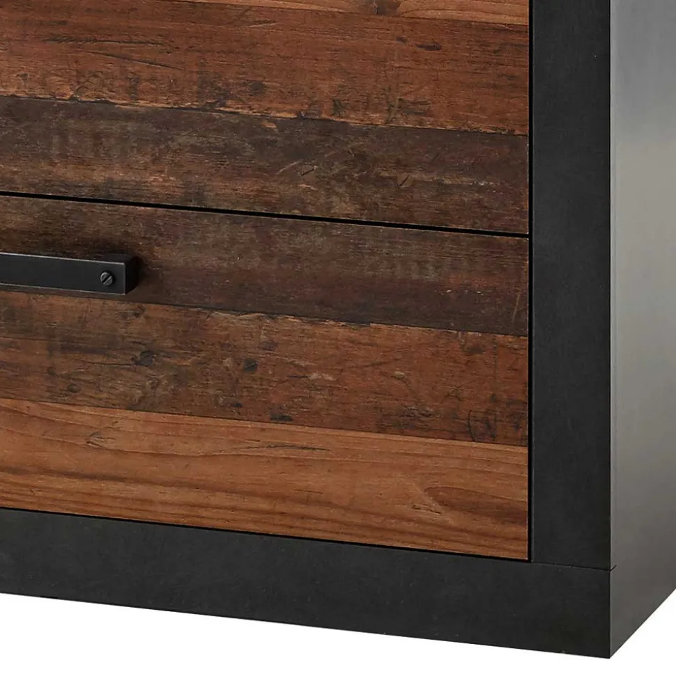 - Praktische Kommode in Dunkelgrau und Altholzoptik