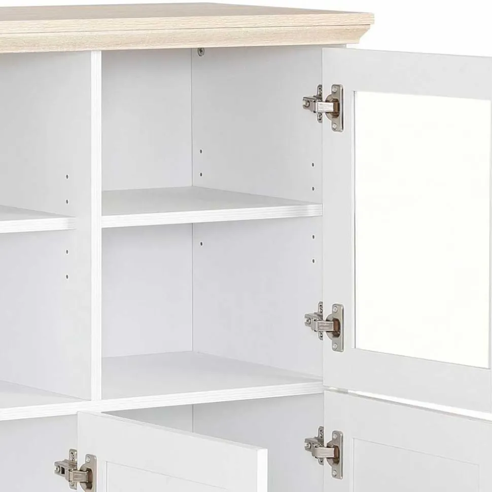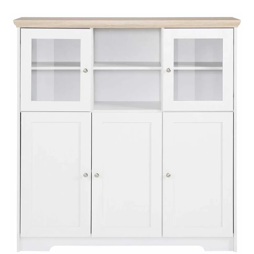 - Preiswertes Highboard in Weiß und Eichefarben
