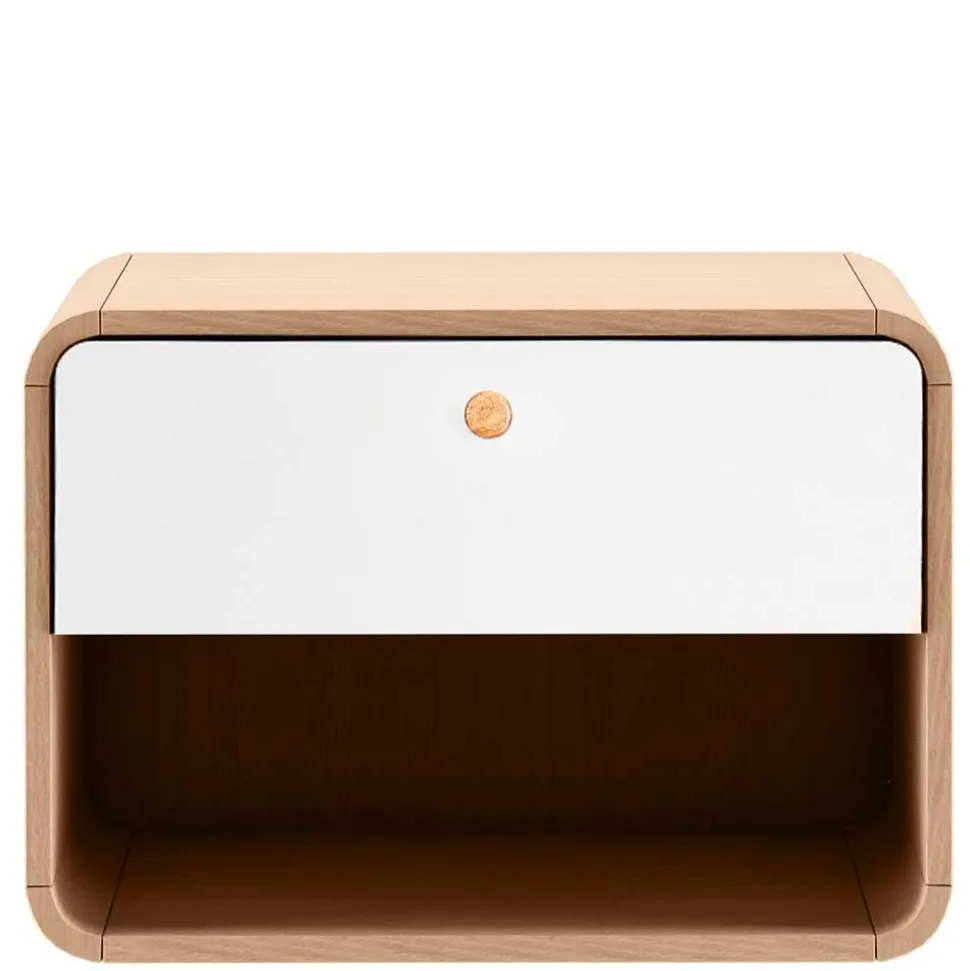 - Kompakte Nachtkonsole in Weiß und Eichefarben