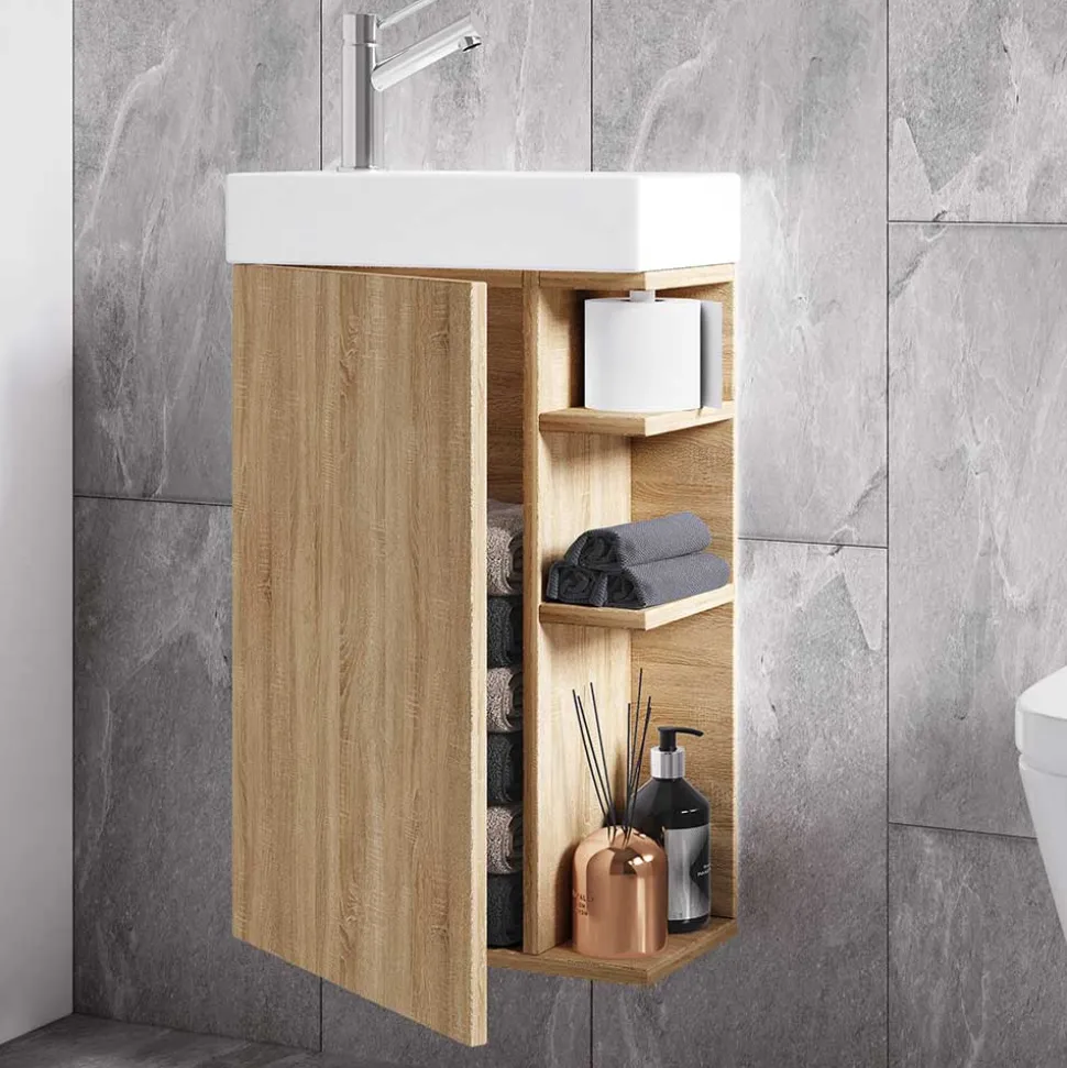 - Schmaler Waschbeckenunterschrank in Sonoma Eiche