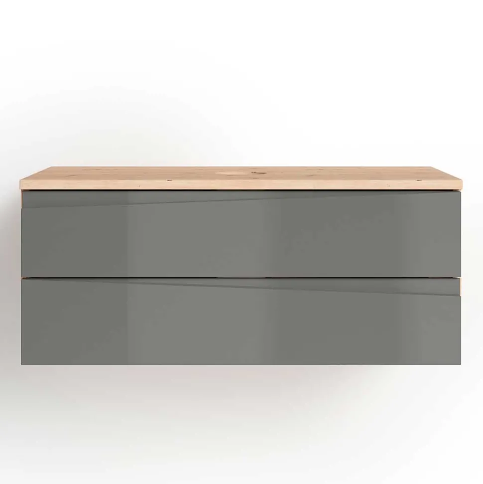 Verleihen Sie Ihrem Badezimmer eine zeitlose Note mit unserem hängenden Waschtisch „Join“. Gefertigt aus hochwertiger Spanplatte (Korpus) und MDF (Front) präsentiert sich dieses Möbelstück in edlem Wildeichefarben und Anthrazit. Das moderne Design und die hochglänzend lackierte Front setzen stilvolle Akzente, die Ihr Badezimmer in eine Wohlfühloase verwandeln.