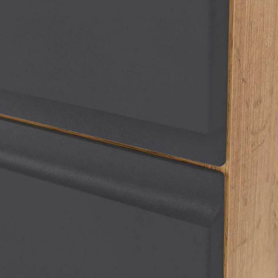 - Korpus und Tür mit Melaminbeschichtung in Holzoptik, Fronten tiefgezogen dunkelgrau matt foliert
