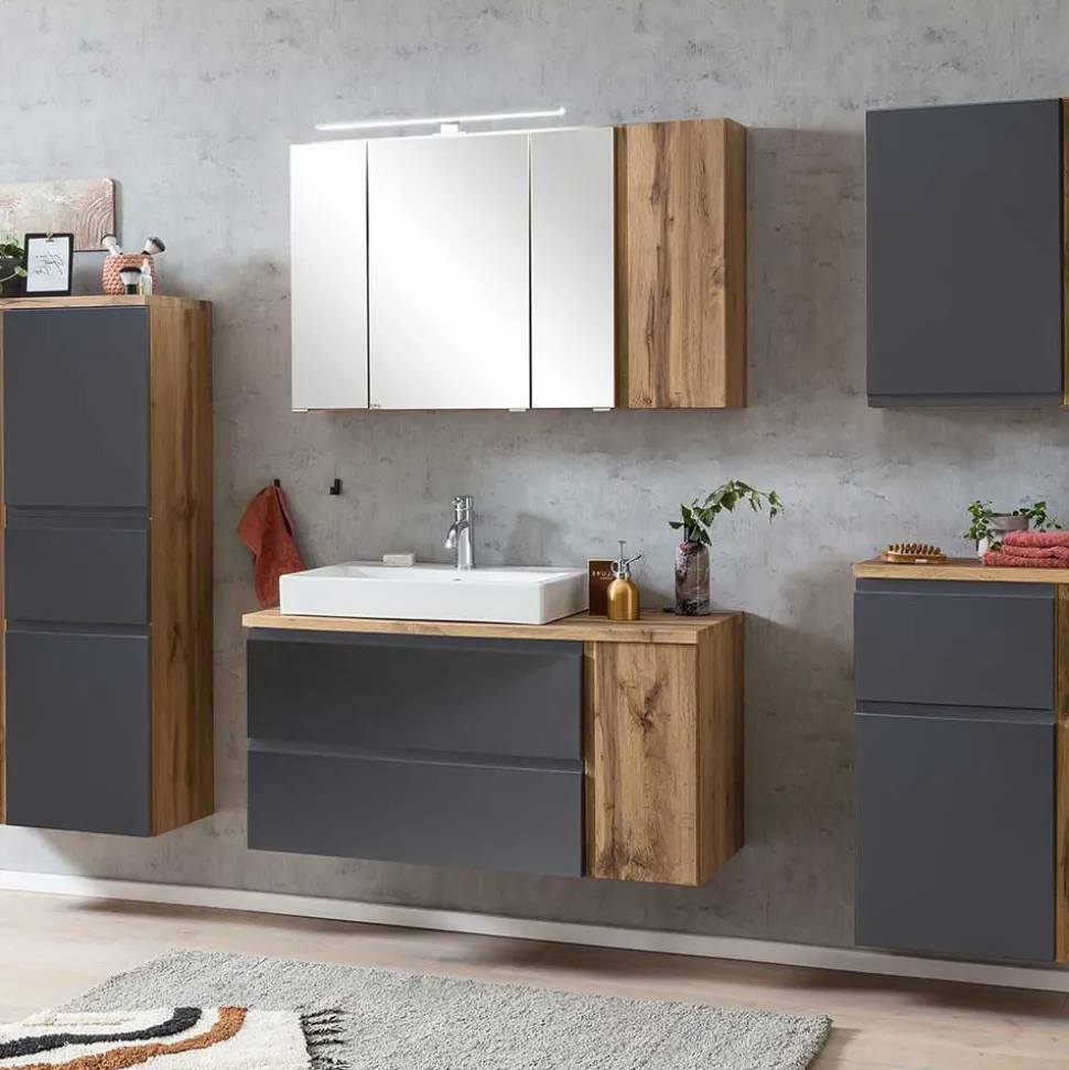 - Geräumiger Waschtisch in Dunkelgrau und Wildeichefarben