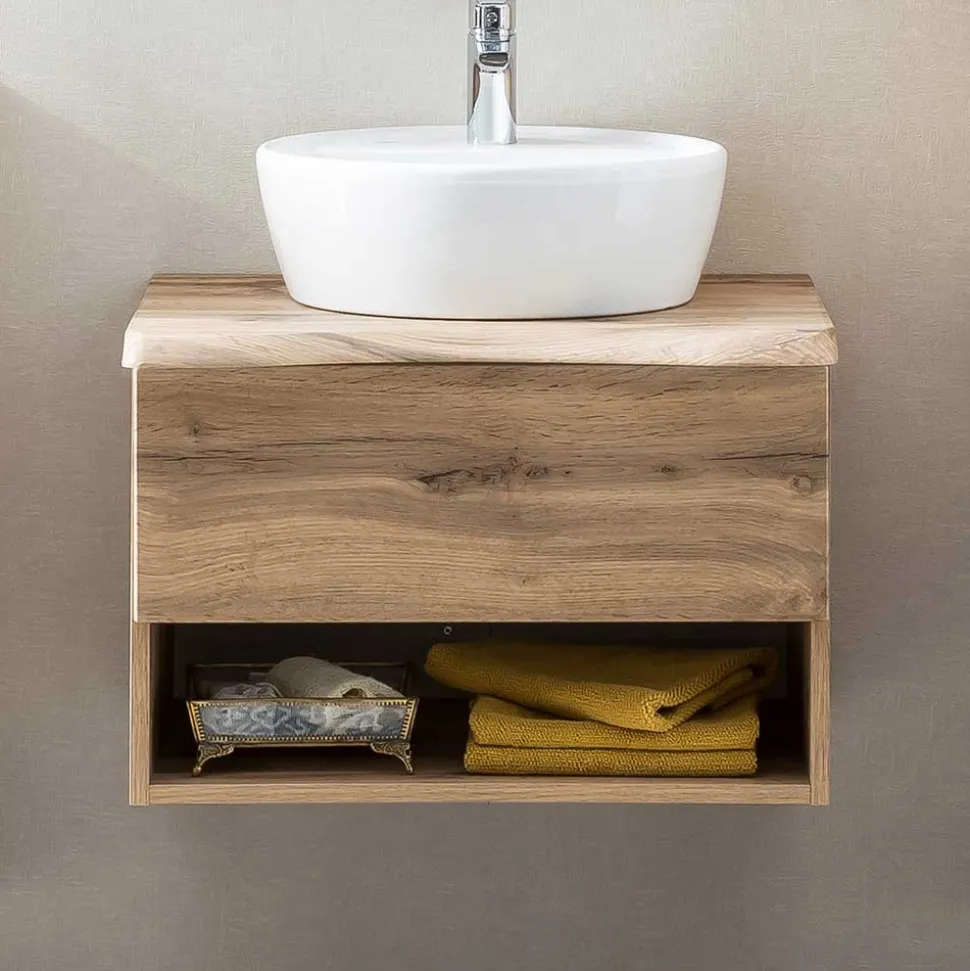 - Schicker Waschtisch in Wildeichefarben mit Baumkante