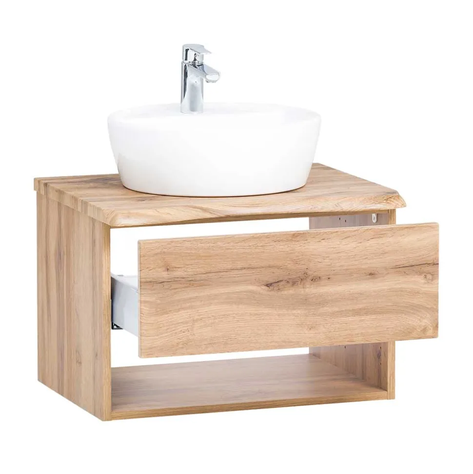 Genießen Sie viel Komfort mit dem mitgelieferten Aufsatzbecken und der praktischen Soft-Close-Funktion bei der Schublade. Bei der Bestellung haben Sie die Wahl zwischen zwei Breiten, um den Waschtisch perfekt an Ihre Bedürfnisse anzupassen.