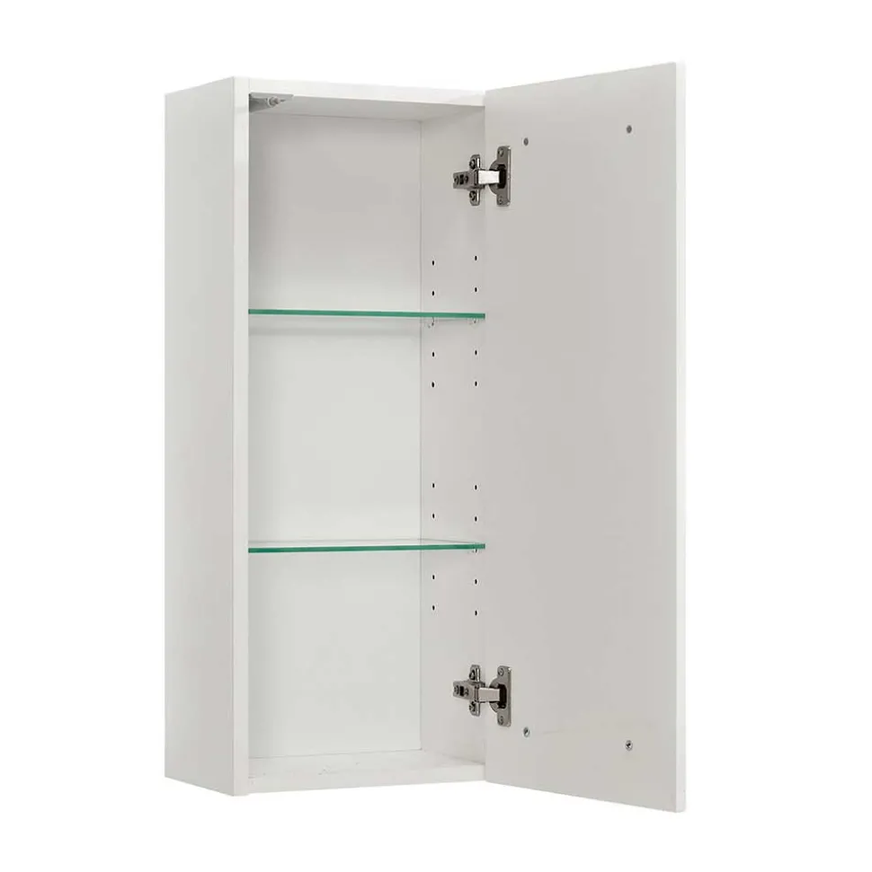 Der Bad-Oberschrank „Makimona“ bietet Ihnen funktionalen Stauraum, der ideal auf die Ansprüche im Bad abgestimmt ist. Eine Soft-Close-Tür schließt besonders sanft und geräuscharm und schützt den Schrank vor Abnutzung. Hinter der Tür befinden sich zwei verstellbare Glas-Einlegeböden, die in drei Fächer unterteilen und so eine flexible Nutzung ermöglichen. Die Tür kann sowohl links- als auch rechtsseitig montiert werden, um eine maximale Anpassung an Ihre Badezimmersituation zu gewährleisten. Dank der dreidimensional justierbaren Hänge-Beschläge gelingt die Wandmontage unkompliziert und sicher.