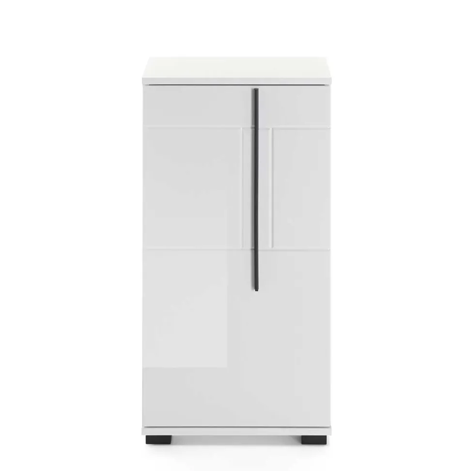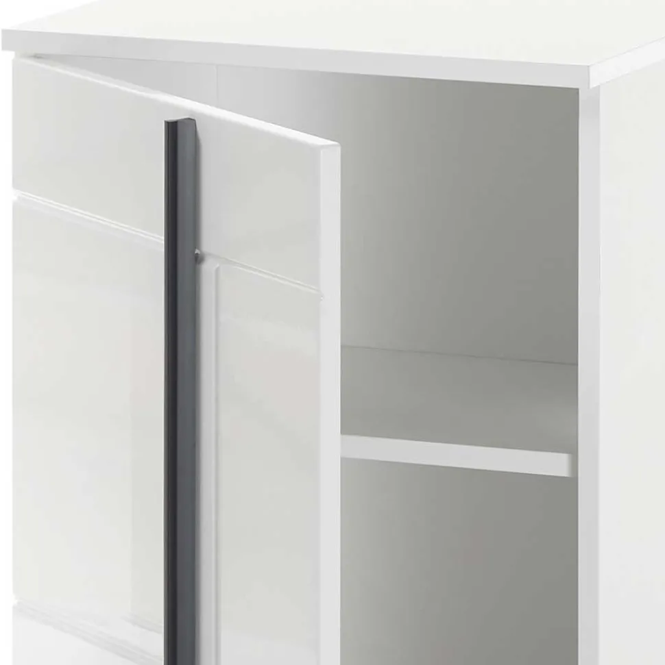 - Front hochglänzend weiß foliert und tiefgezogen, Korpus melaminbeschichtet