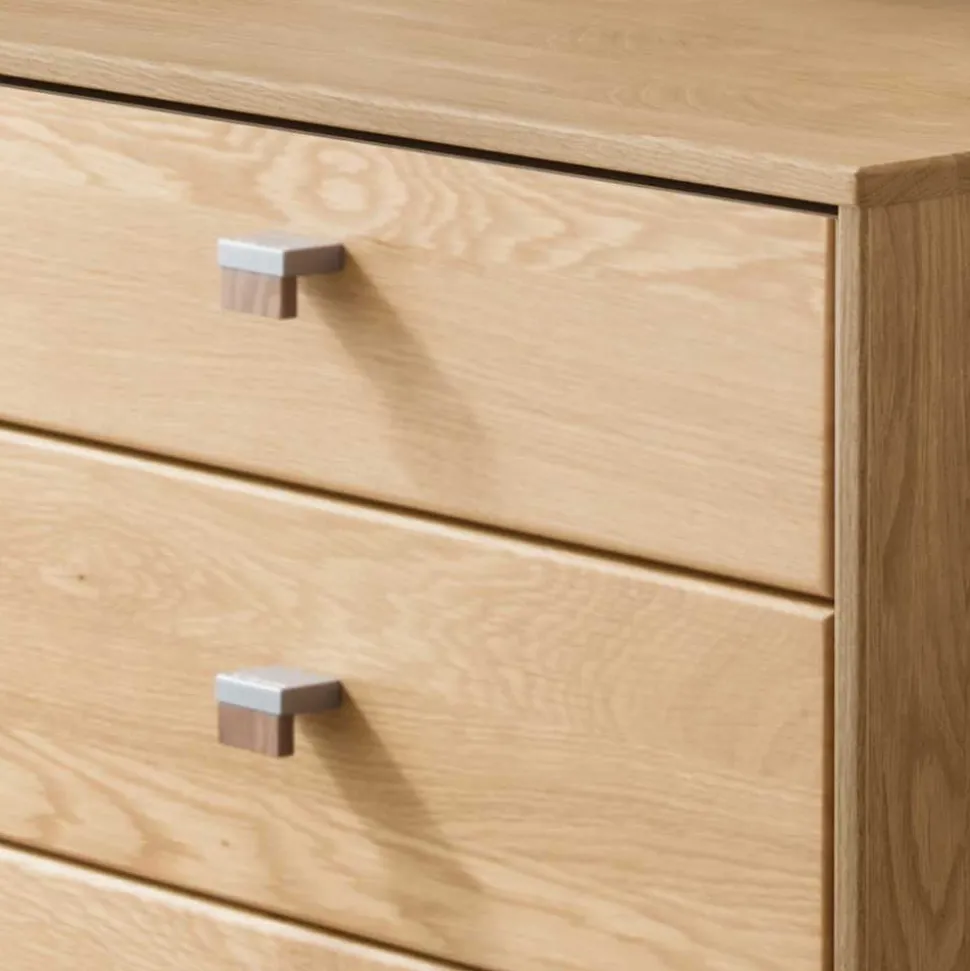 Die „Emdsiva II“ Kommode beeindruckt nicht nur durch ihr Äußeres, sondern auch durch ihre liebevollen Details. Die aufwändig gestalteten Griffe, gefertigt aus Metall und Eiche Massivholz, verleihen dem Möbelstück eine besondere Note und sorgen für ein komfortables Handling.