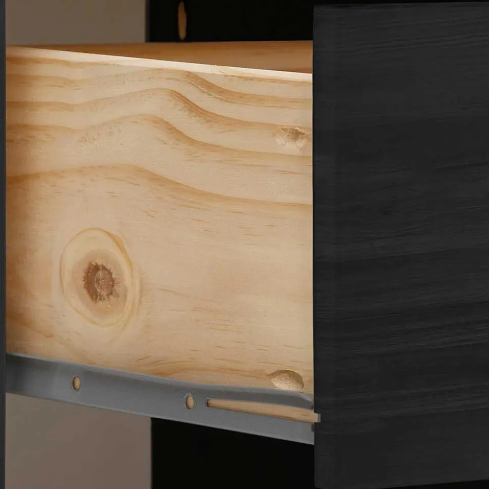 Die Hochkommode „Pacianus“ begeistert mit ihrem stilvollen, modernen Design und praktischen Stauraum. Das durchscheinend schwarz lackierte Kiefernholz, kombiniert mit der naturbelassenen Holzoptik im Inneren, verleiht dem Möbelstück einen edlen Look, der in jedem Raum ein Highlight setzt. Ob im Schlafzimmer, Flur oder Wohnzimmer – „Pacianus“ fügt sich harmonisch in viele Einrichtungsstile ein.