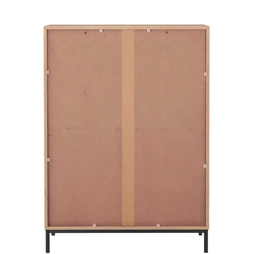 Die Hochkommode „Lunira“ verbindet klare Linien mit einer warmen, natürlichen Ausstrahlung. Die Kombination aus Eiche Natur Holzoptik und schwarzem Metall macht sie zu einem echten Blickfang, der sich mühelos in verschiedene Wohnkonzepte einfügt. Ob im Schlafzimmer, Flur oder Wohnzimmer – dieses Möbelstück bietet praktischen Stauraum und setzt gleichzeitig stilvolle Akzente.