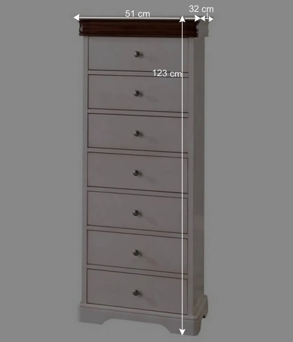 Mit einer Breite von 51 cm, einer Höhe von 123 cm und einer Tiefe von 32 cm ist die Hochkommode kompakt und ideal für unterschiedlichste Raumgrößen geeignet. Die Lieferung erfolgt fertig montiert, kleinere Anbauteile sind möglicherweise noch anzubringen.