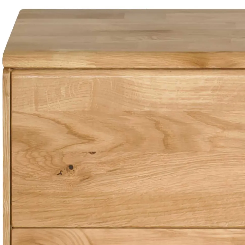 Streichen die Fingerspitzen über die geölte Wildeiche, offenbart sich ihre einzigartige Haptik: sanft, seidig und zugleich spürbar lebendig. Die feine Maserung, mal sanft gewellt, mal von kleinen Rissen durchzogen, zeugt von der ursprünglichen Kraft des Holzes und macht jedes Exemplar zu einem einzigartigen Original. Wildeiche gilt als besonders robust und langlebig – ein Material, das nicht nur optisch begeistert, sondern auch im Alltag seine Stärke zeigt.