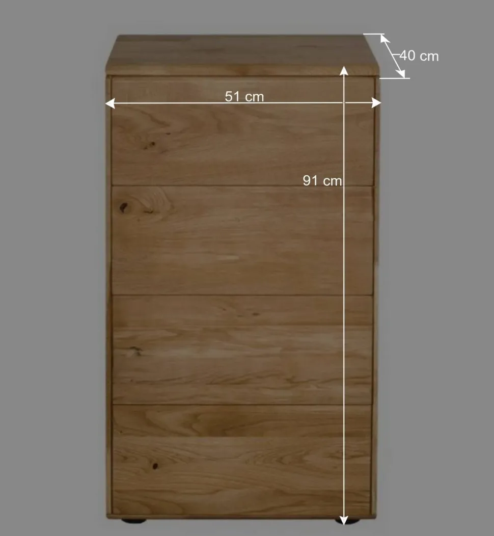 Das klare, rechteckige Design mit sanft abgerundeten Kanten verleiht der Kommode eine ruhige, harmonische Ausstrahlung. Vier großzügige Schubladen mit leichtgängigen Metallauszügen und komfortabler Tip-On-Funktion eröffnen viel Stauraum für Ihre liebsten Dinge. Ein sanfter Fingertipp genügt und die Schubladen gleiten leise und elegant auf – ein Detail, das nicht nur Komfort, sondern auch zeitlose Eleganz in Ihren Alltag bringt.