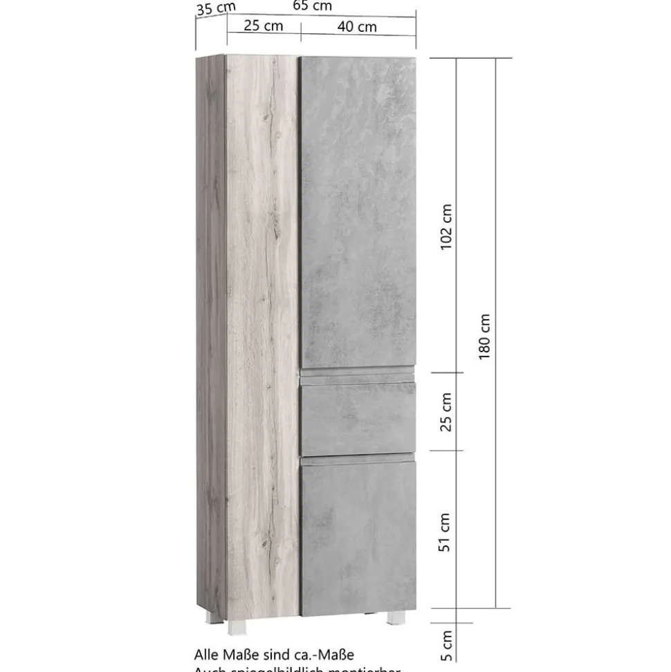 - Klasse Bad Hochschrank in Dunkelgrau und Wildeichefarben
