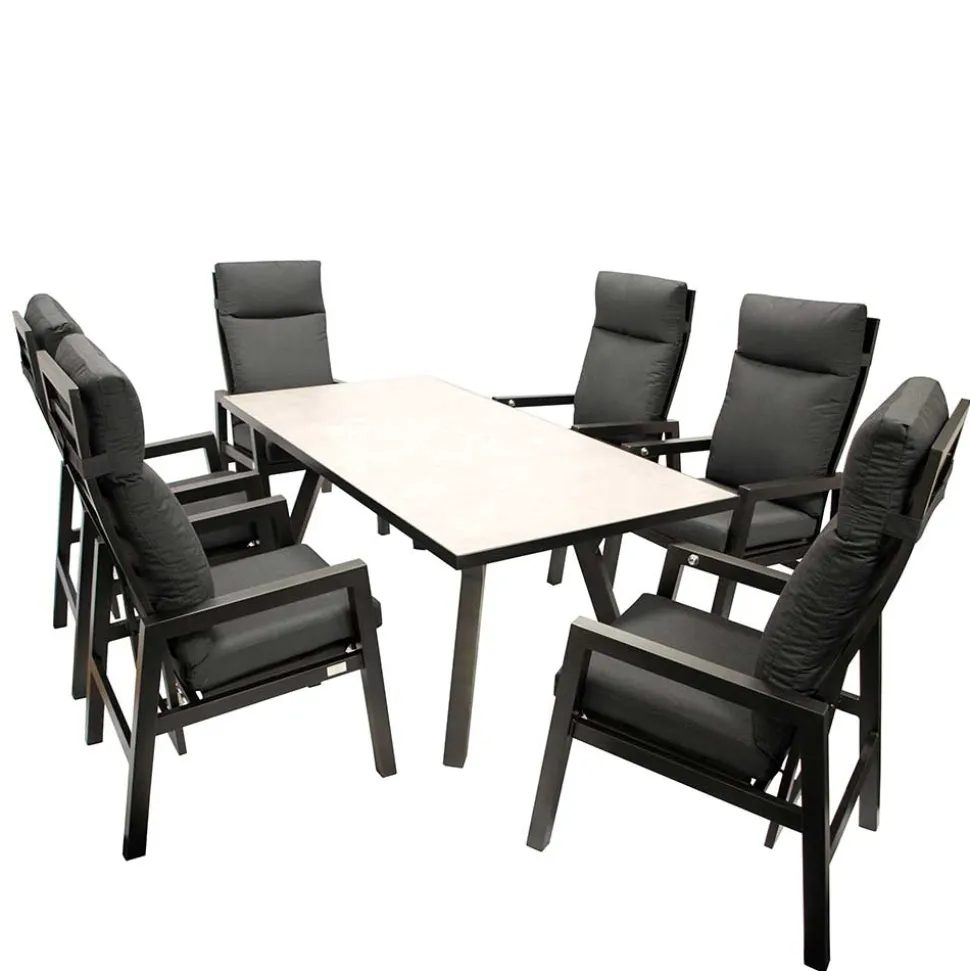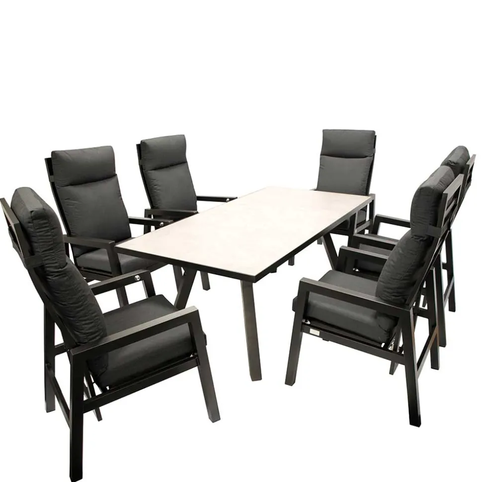 Ein stilvoller Garten verdient eine ebenso stilvolle Möblierung! Mit der exklusiven Garten Sitzgruppe „Alpes“ wird Ihre Terrasse oder Ihr Garten zu einem luxuriösen Rückzugsort. Modernes Design trifft auf herausragende Qualität – hier genießen Sie Komfort, der begeistert.