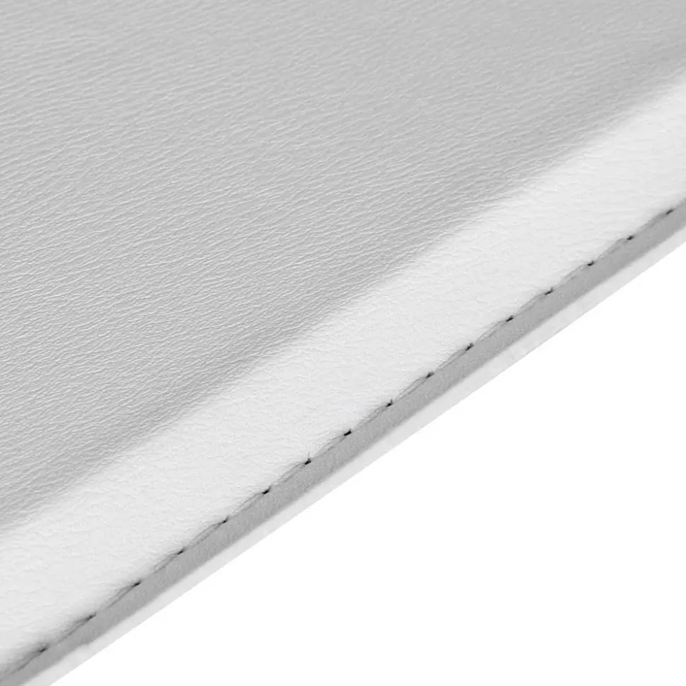 MDF bildet die Grundlage der Tischplatte – ein äußerst stabiles und langlebiges Holzwerkstoffmaterial, das sich durch seine glatte Oberfläche und Widerstandsfähigkeit auszeichnet. Die Platte ist vollständig mit weißem Kunstleder bezogen. Dieses besteht zu 100 % aus Polyurethan, was zahlreiche Vorteile mit sich bringt: Die Oberfläche wirkt hochwertig und lederähnlich, ist aber deutlich pflegeleichter, wasserabweisend und strapazierfähig.