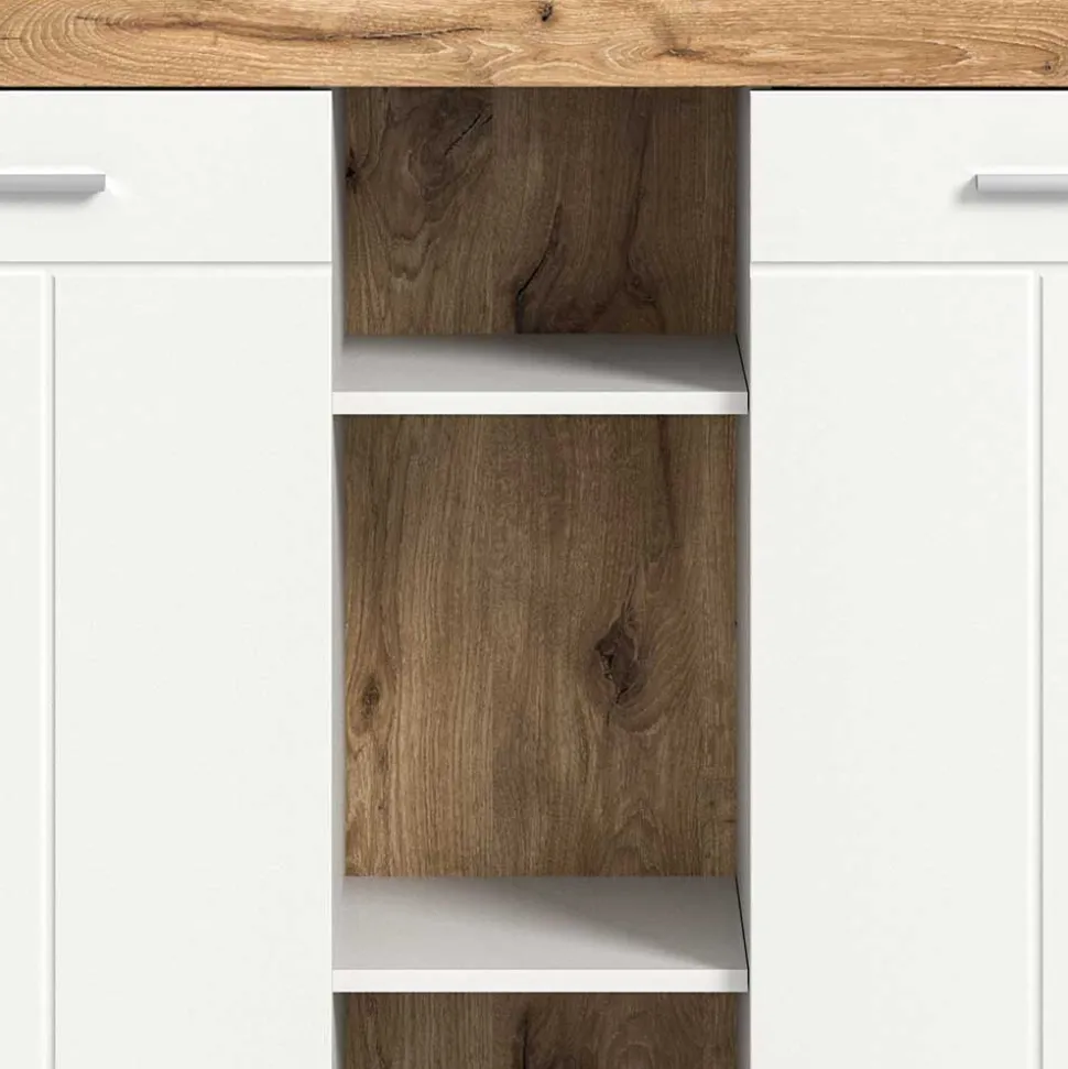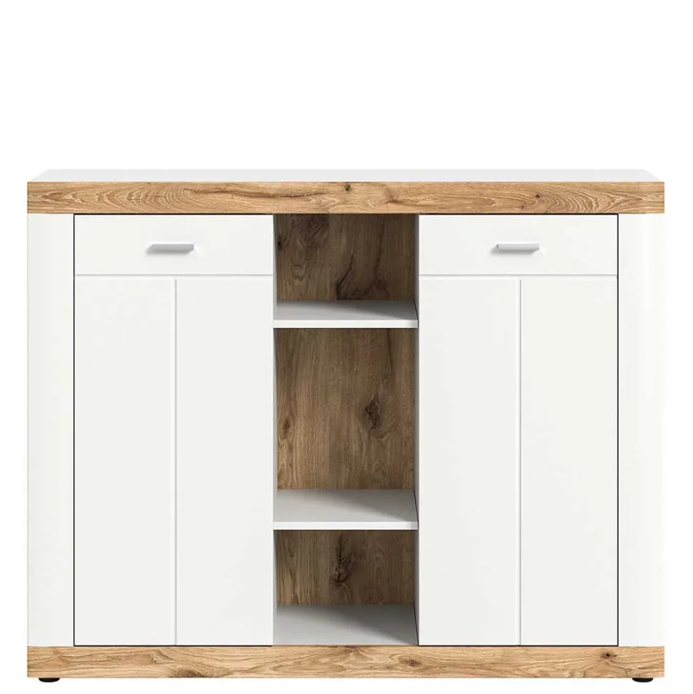 - Ansprechendes Sideboard in Weiß und Wildeichefarben