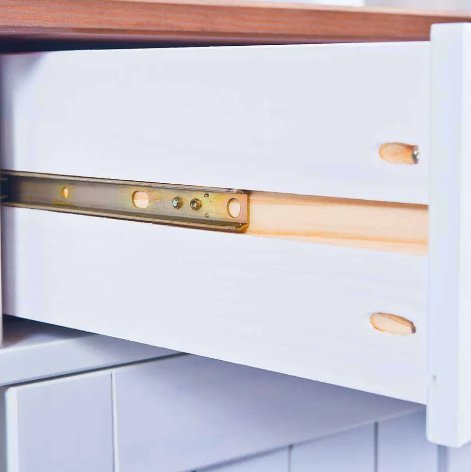 - Insgesamt sechs Schubladen mit Metallauszug, in zwei verschiedenen Größen