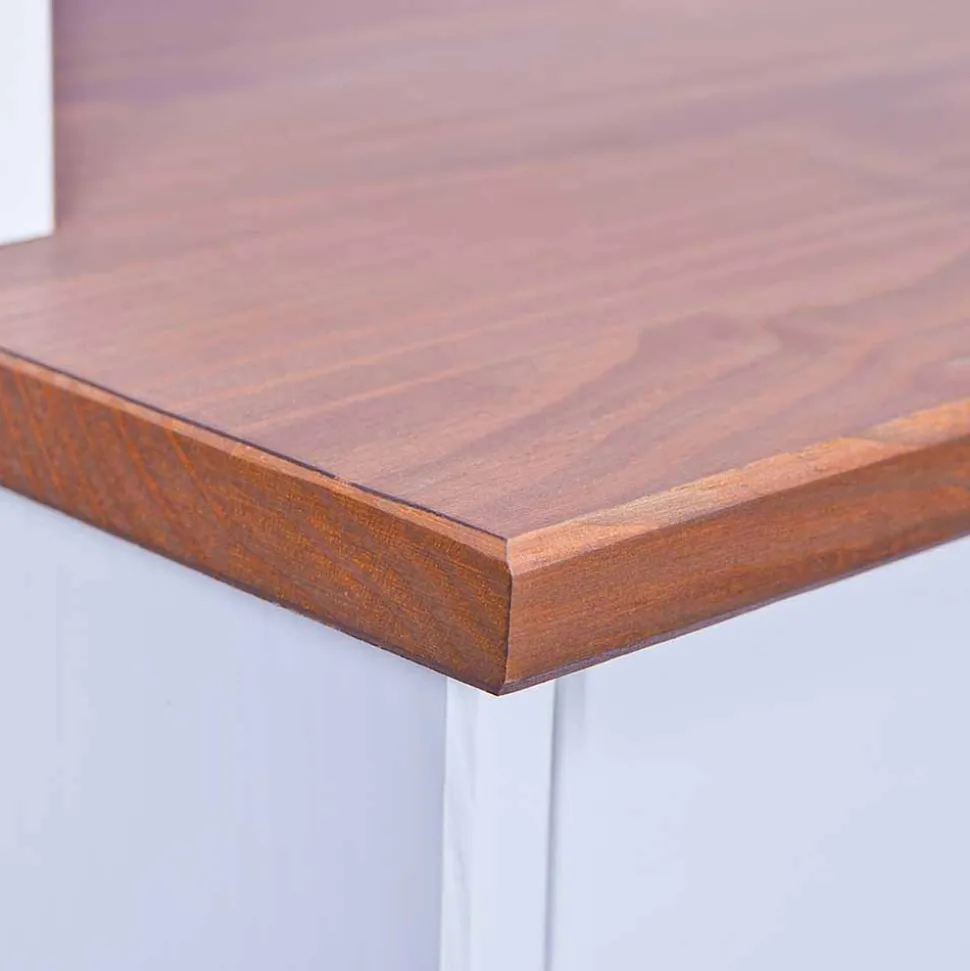 Handverlesen und komplett gefertigt aus massiver Kernbuche, steht „Vatina“ nicht nur für Stil, sondern auch für Langlebigkeit und Robustheit. Die Kernbuche, bekannt für ihre markante Maserung und warme Farbgebung, verleiht jedem Raum ein Gefühl von Wärme und Natur. Zusätzlich sorgt die matte weiße Lackierung der Holzoberflächen in Kombination mit der braun lackierten Deckplatte und Ablage für einen modernen Kontrast, der die natürliche Schönheit des Holzes hervorhebt. Die Lackierung schützt zudem effektiv vor Abnutzung und erleichtert die Reinigung.