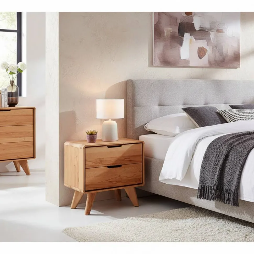 Massive Kernbuche charakterisiert den Nachttisch „Junola“, bekannt für ihre besondere Härte und ausgeprägte Maserung. Diese Holzart verspricht nicht nur eine ästhetische Optik, sondern auch eine herausragende Langlebigkeit und Stabilität. Die Oberfläche des Holzes ist natürlich geölt, was die Struktur und Farbe der Kernbuche hervorhebt und für einen zusätzlichen Schutz sorgt, während die erstklassige Stabverleimung für eine makellose und ebenmäßige Oberfläche steht.