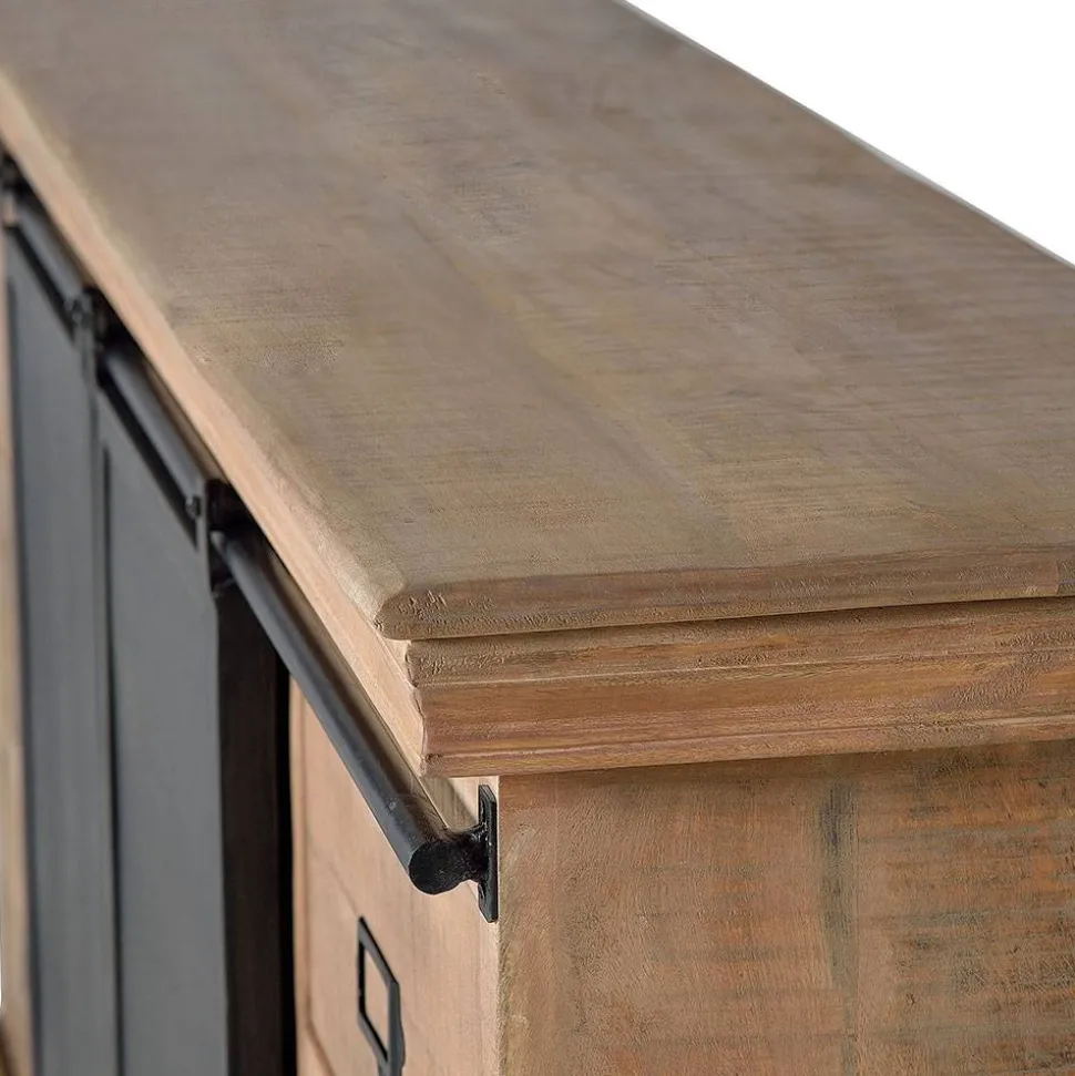 Gefertigt aus massivem Mangoholz in Naturfarben und kombiniert mit Schwarzgrau lackiertem Metall, strahlt dieses TV Lowboard eine natürliche Wärme aus, die perfekt mit der rauen Ästhetik des Industrial Designs harmoniert. Mangoholz ist nicht nur optisch ein Highlight mit seinen einzigartigen Maserungen, sondern auch ein besonders widerstandsfähiges Hartholz, das Ihnen über Jahre hinweg Freude bereiten wird. Das Metall sorgt für Stabilität und einen markanten Look, der den industriellen Charme unterstreicht.