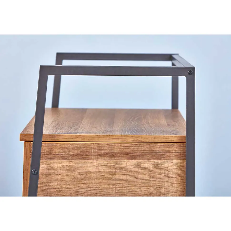 - MDF melaminbeschichtet in Holzoptik Wildeiche, Metall in Anthrazit pulverbeschichtet