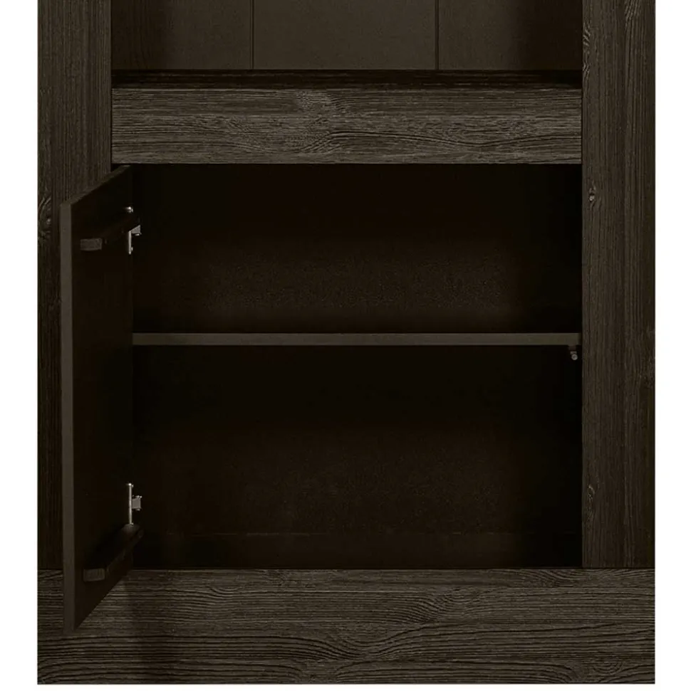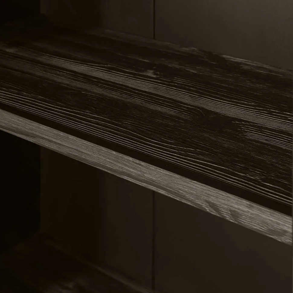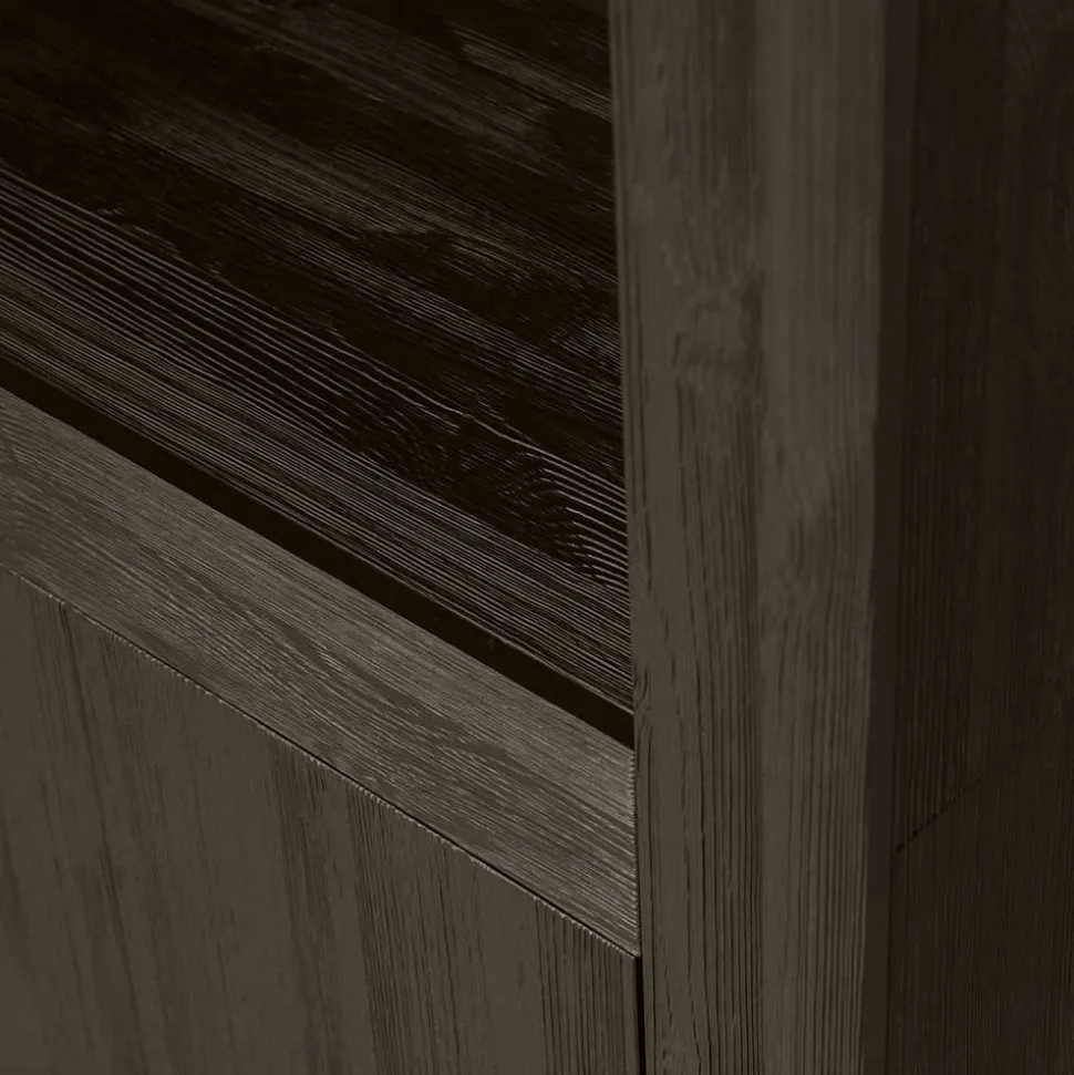 - Zeitloser Japandi Regalschrank in Kiefer Dunkelbraun