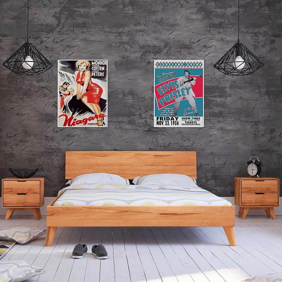 - Modernes Massivholzbett in Kernbuchefarben mit Nachtkommoden