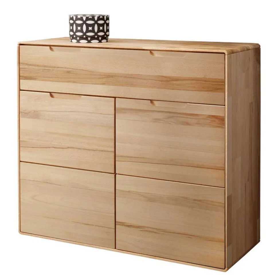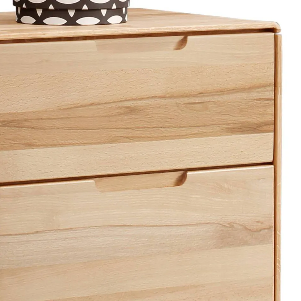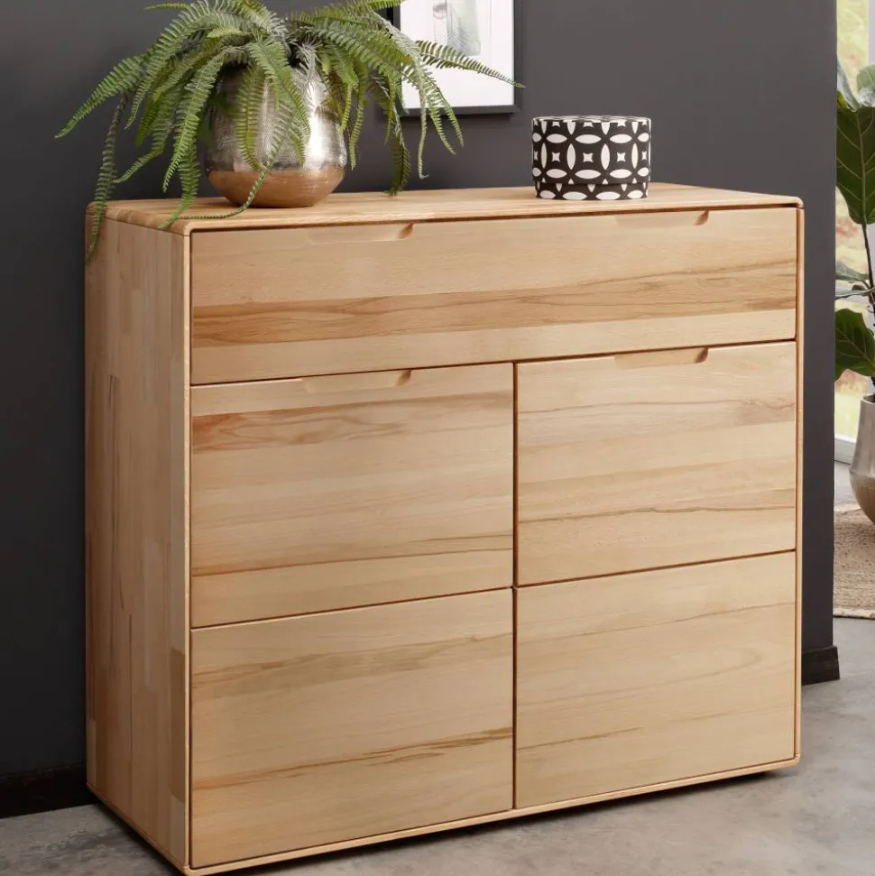 Ein stilvoller Blickfang und praktischer Ordnungshelfer zugleich: Die Kommode Estville vereint modernes Design mit hochwertiger Verarbeitung und natürlichem Charme. Gefertigt aus massiver Kernbuche, beeindruckt dieses Möbelstück durch seine warme Holzoptik und langlebige Qualität. Holen Sie sich ein Stück Natur in Ihr Zuhause und erleben Sie, wie es für eine Wohlfühlatmosphäre und ein gesundes Raumklima sorgt.