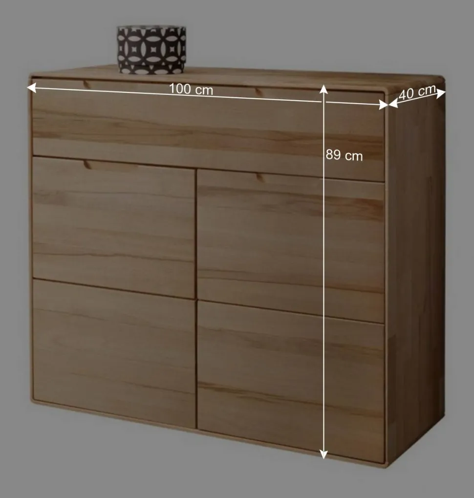 Kernbuche ist nicht nur ein optisches Highlight mit ihrer charakteristischen Maserung, sondern auch ein robustes und langlebiges Holz. Die natürliche Maserung macht jede Kommode zu einem Unikat, während die geölten Oberflächen den natürlichen Charme des Holzes hervorheben. Dank der Ölbehandlung bleibt die Oberfläche atmungsaktiv, ist gleichzeitig vor Feuchtigkeit geschützt und besonders pflegeleicht. Dieses Möbelstück bringt die perfekte Balance aus Natürlichkeit und Funktionalität in Ihre Wohnräume.