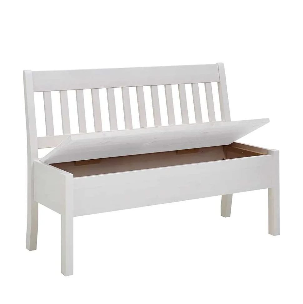 Kiefernholz Truhenbank in Weiß – Zanaris
