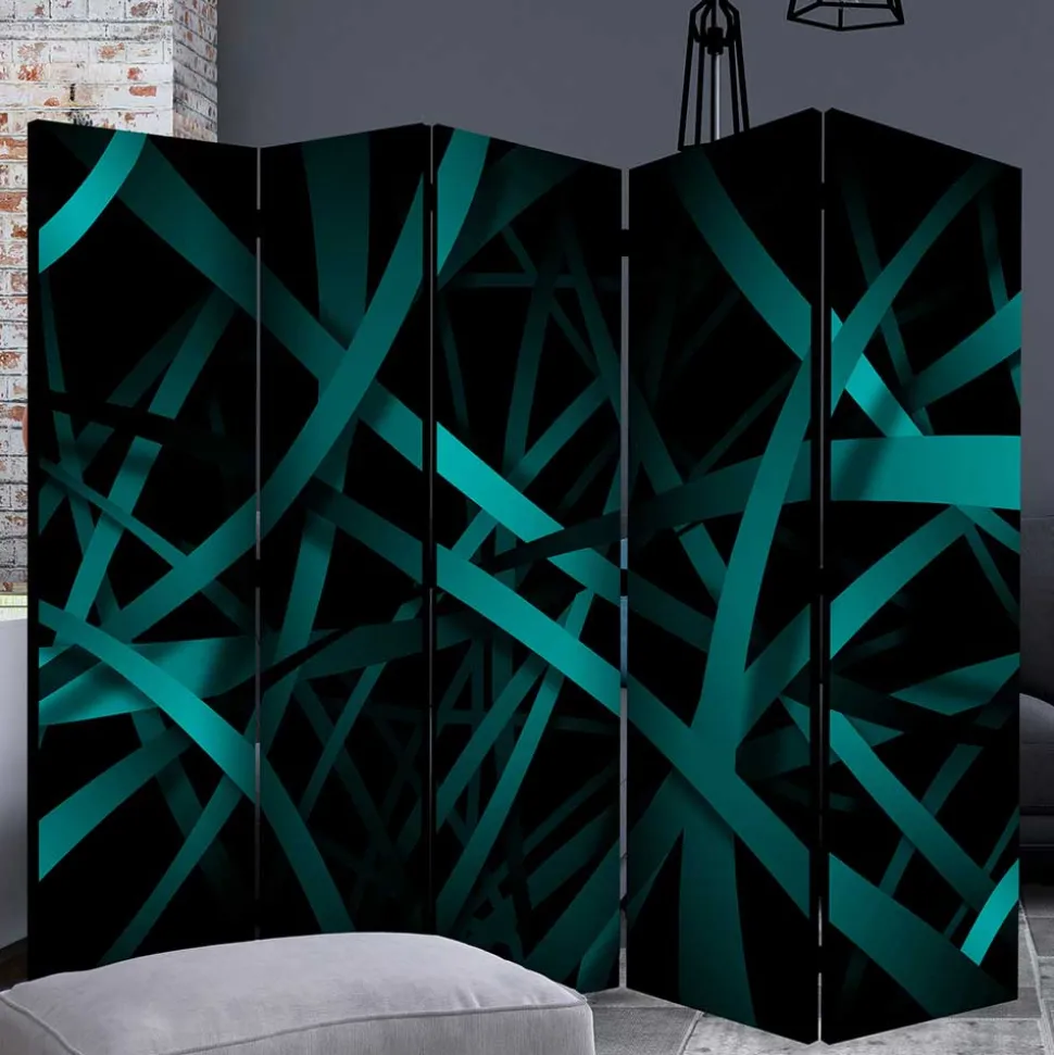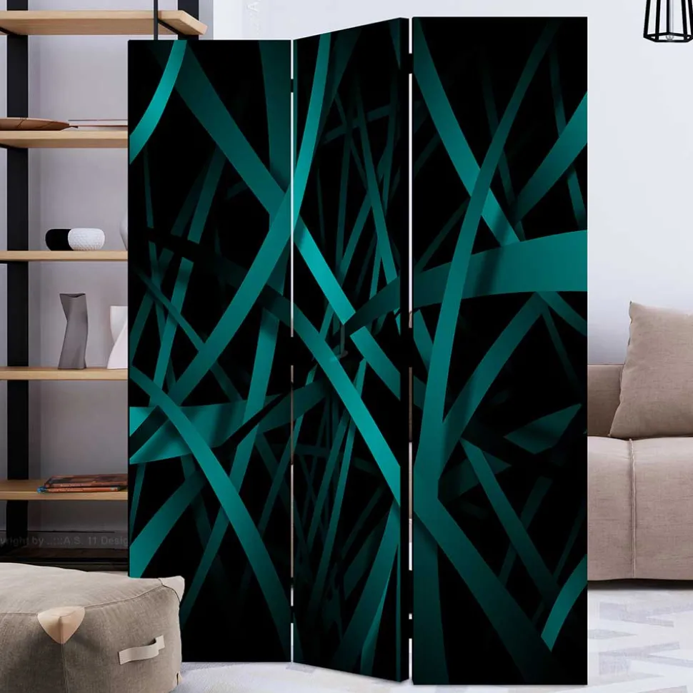 Klappbarer Paravent in Petrol & Schwarz - Live
