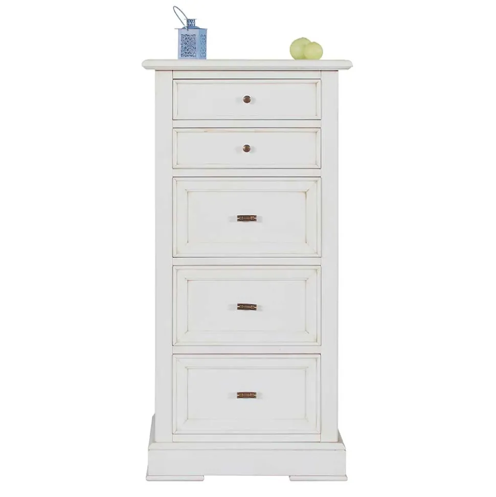 - Stilvoll und elegant präsentiert sich die Kommode in zeitlosem Antikweiß