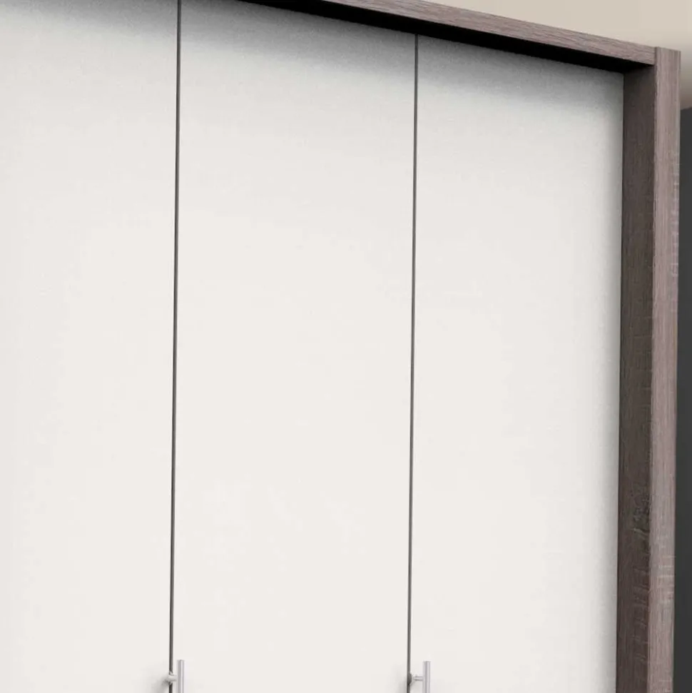 - Ansprechender Kleiderschrank in Weiß und Eiche Trüffelfarben