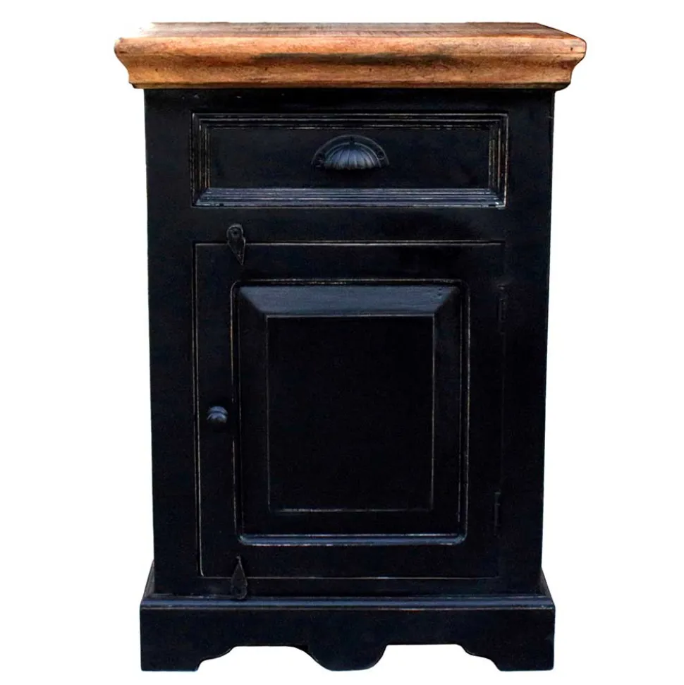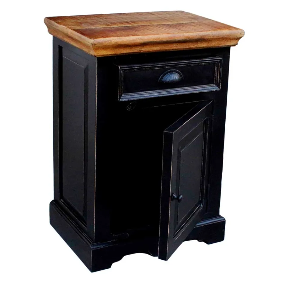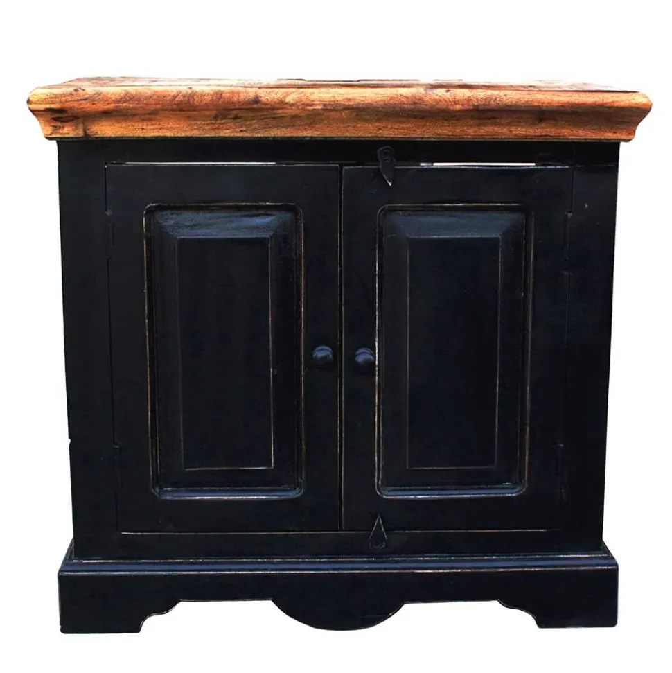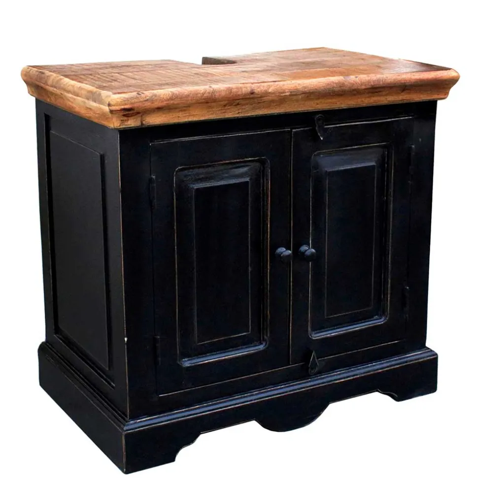 - Lackierte Oberflächen mit Antik Finish in Schwarz, Deckplatten aus Massivholz honigfarbig lackiert